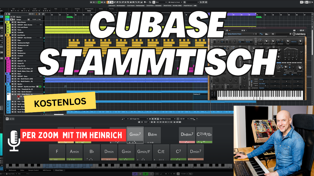 Der kostenlose Cubase-Stammtisch findet online per zoom statt. Der Stammtisch wird aufgezeichnet - aber nur der Ton. Eine geschnittene Fassung wird auf YouTube und als Podcast veröffentlich. Es gibt jedes Mal ein Thema, aber alle Fragen sind willkommen und Austausch erwünscht.