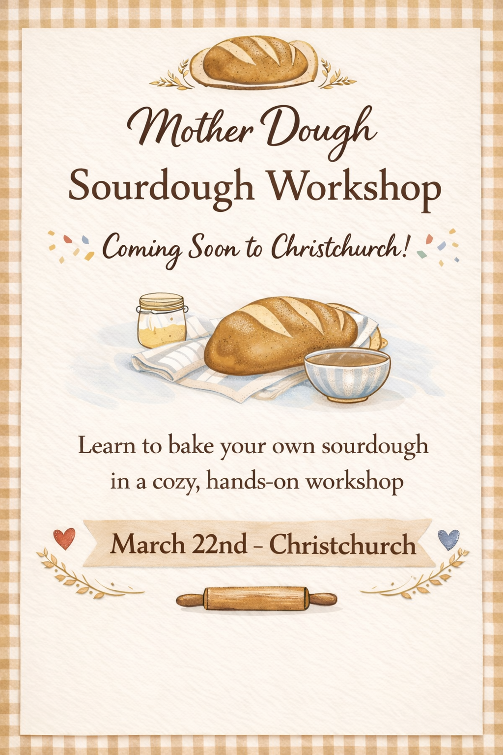 Join us for a 2-hour, fun, no-jargon workshop designed for busy people who want to learn how to make delicious sourdough without the stress. We’ll guide you through the process in a relaxed, cozy environment, making sourdough approachable, enjoyable, and hands-on.