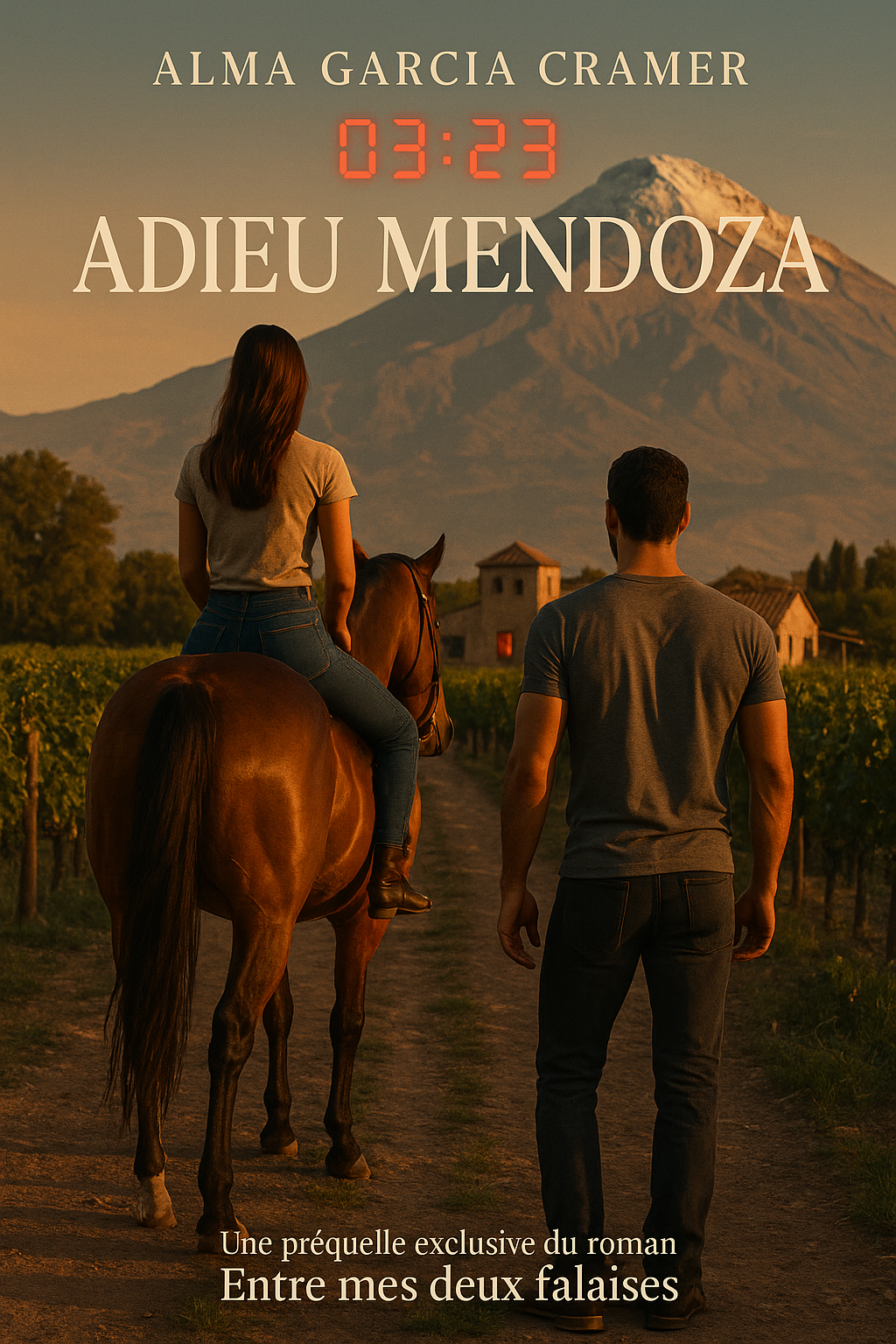 Reçois, en cadeau de bienvenue, 03:23, Adieu Mendoza, la préquelle exclusive de mon roman Entre mes deux falaises.