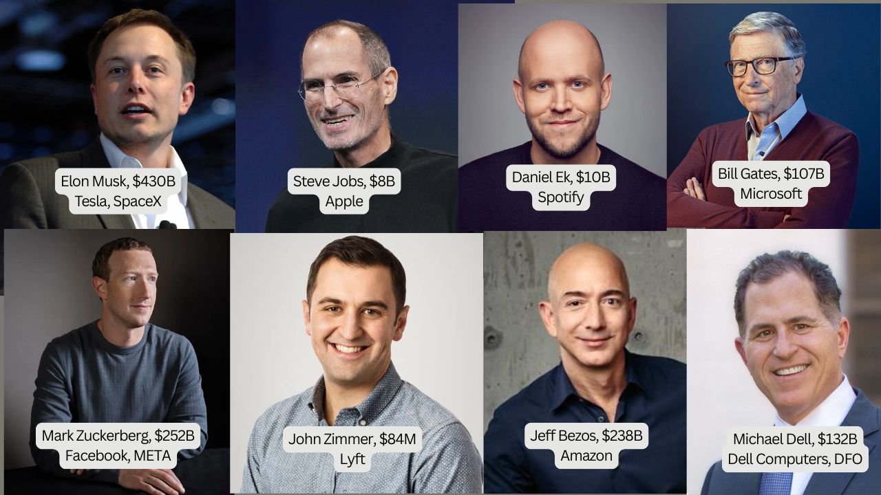 Yes you are right... And they span decades from the breakthrough tech IPOs in the 80s - Microsoft (Bill Gates), Dell Computers (Michael Dell), Apple Computer (Steve Jobs) to the disrupters of the since the millennium: Amazon (Jeff Bezos), Tesla (Elon Musk), Facebook (Mark Zuckerburg), Spotify (Daniel Ek) and up & coming Lyft (John Zimmer)