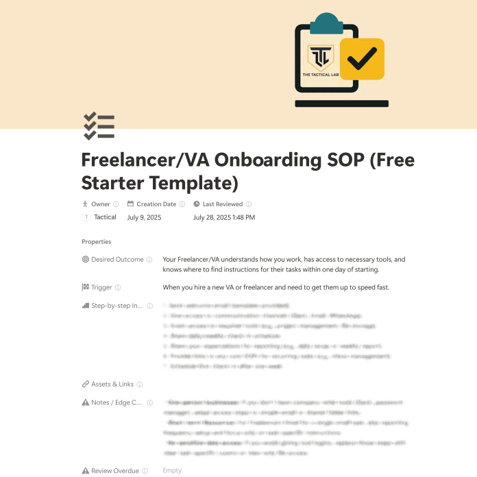 We'll send the link to the Freelancer/VA Onboarding SOP template to your inbox right away!