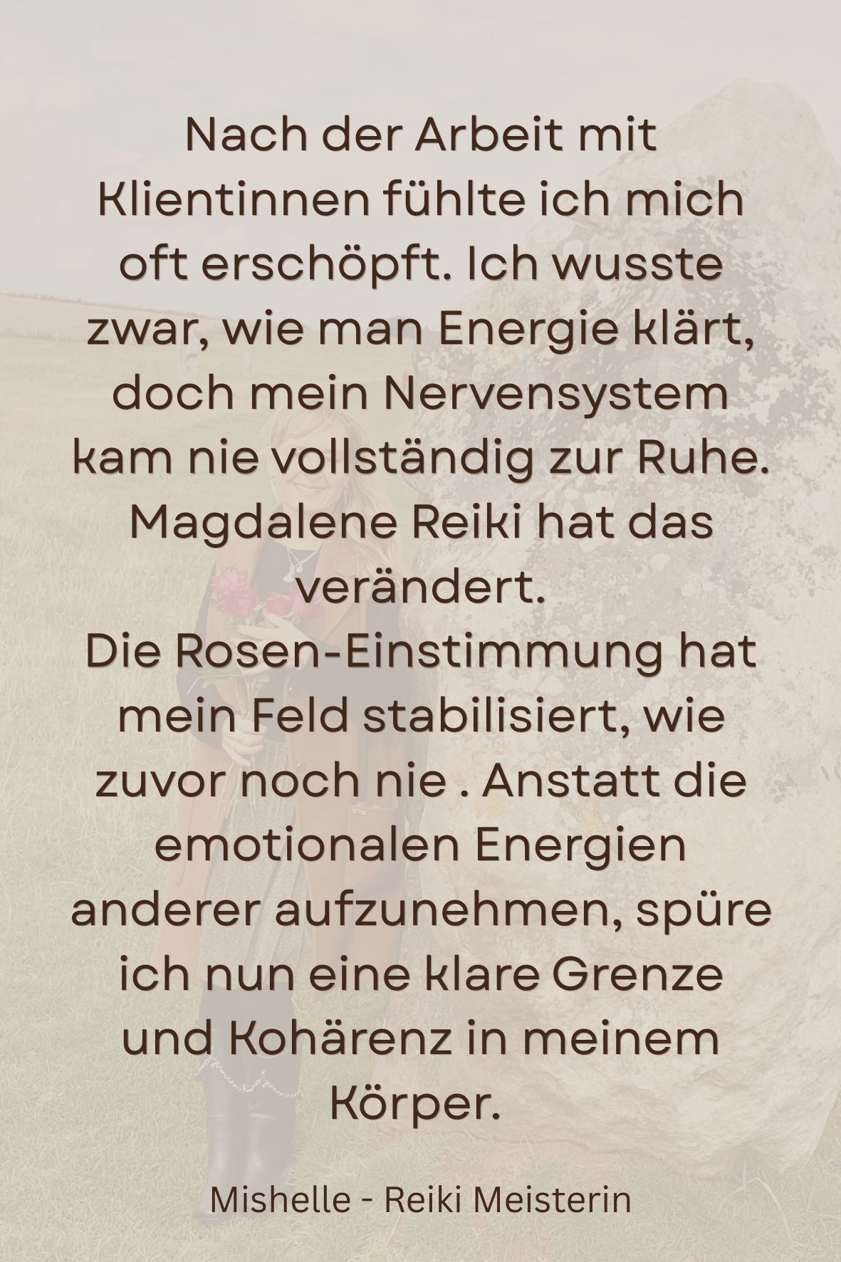 Meine Reise mit Reiki begann 2011 mit dem ersten Grad, gefolgt vom zweiten Grad im Jahr 2013. Erst 2024 rief mein Herz danach, den Reiki-Meisterweg zu gehen. In dieser Zeit wurde ich von Julia als Lehrerin begleitet, eine besondere Zeit, in der ich lernen und tief erleben durfte. Mein Kanal hat sich noch weiter geöffnet, meine Spiritualität wurde greifbarer. Als Abschluss dieser Reise empfing ich die Einweihung ins Maria Magdalena Reiki. Ein Moment, der mich tief mit meiner eigenen Weiblichkeit und Spiritualität verbunden hat.