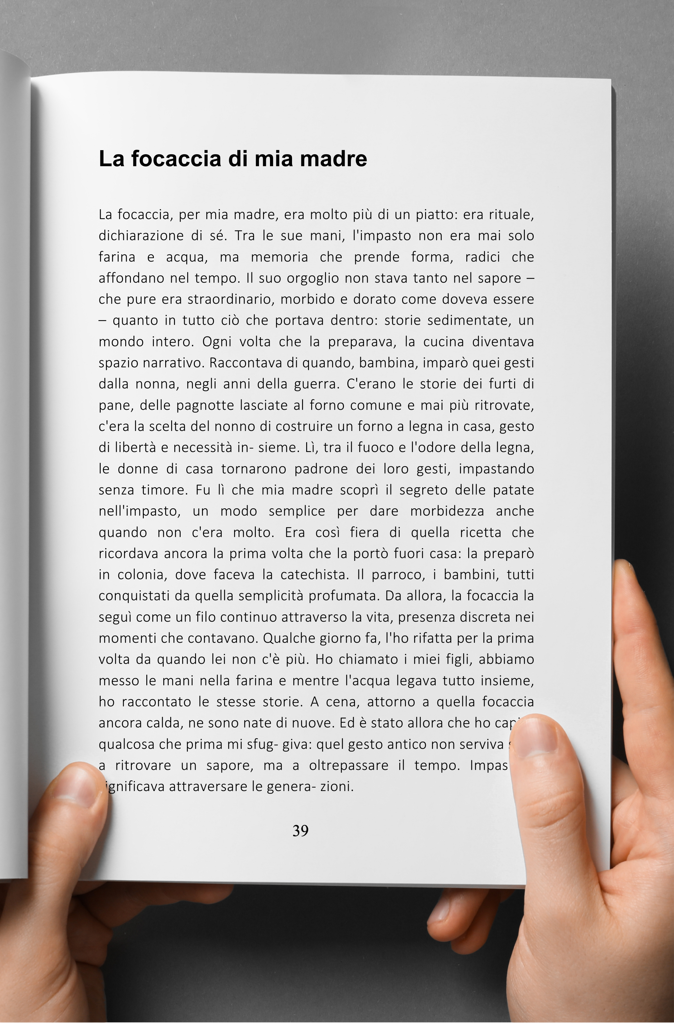 Dalla cucina materna alle radici pugliesi, il racconto diventa spazio di eredità e riconciliazione. Qui la memoria non è nostalgia, ma materia viva: un filo che attraversa le generazioni e restituisce al gesto quotidiano la sua dimensione più intima e universale.