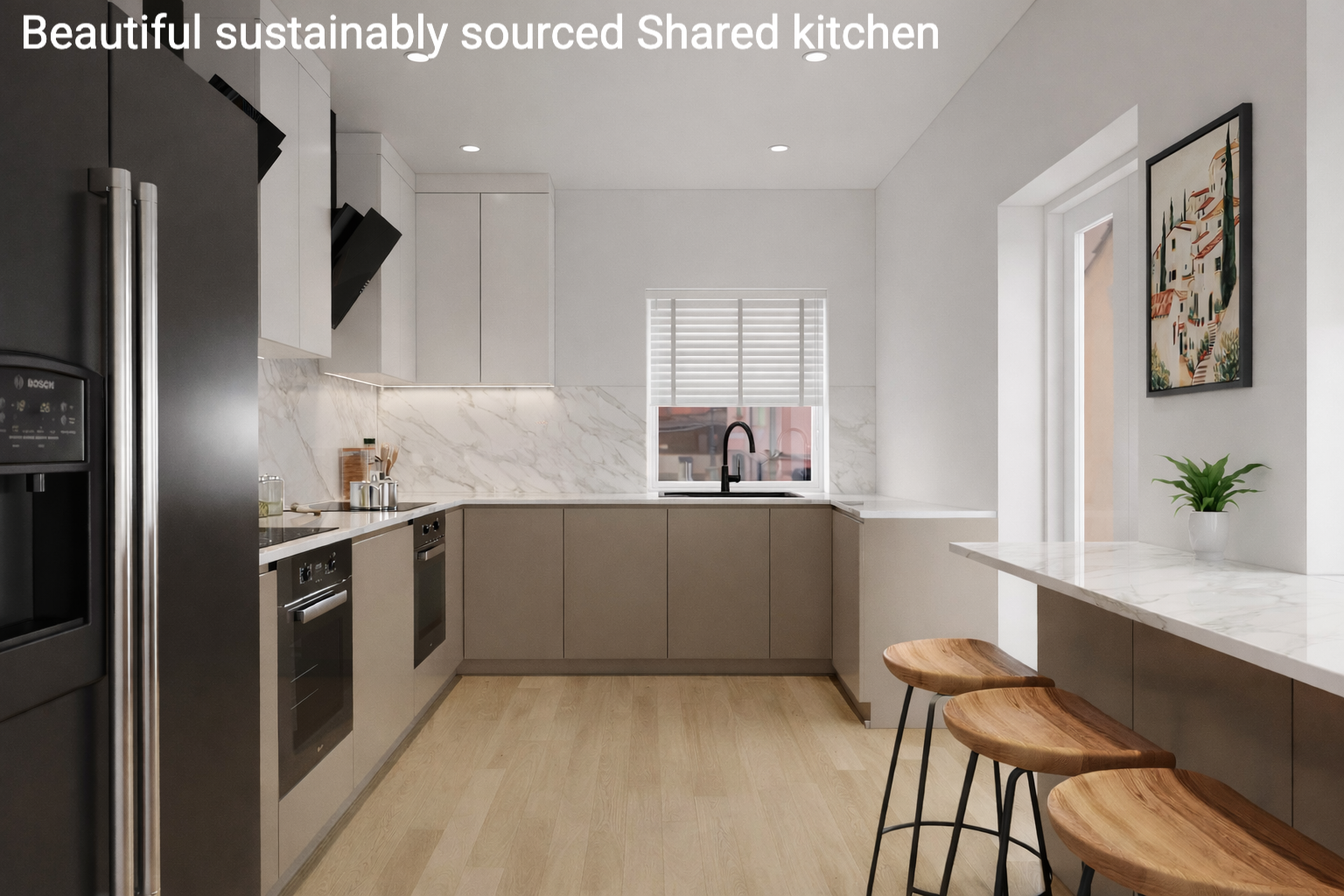 Conscious of the planet & the rising costs of energy bills, this home will use solar power & a renewable heating system (ASHP) to generate sustainable energy throughout. All appliances will aim to be above a B grade energy efficiency rating & the communal kitchen has a boiling hot water tap - so no kettle required!