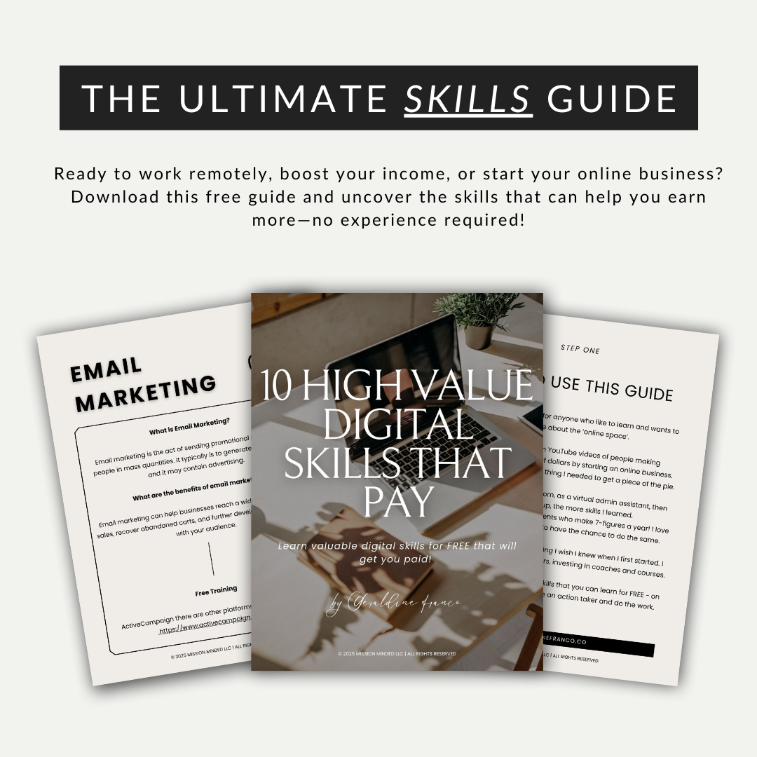 Ready to work remotely, boost your income, or start your online business? Download this free guide and uncover the skills that can help you earn more—no experience required!