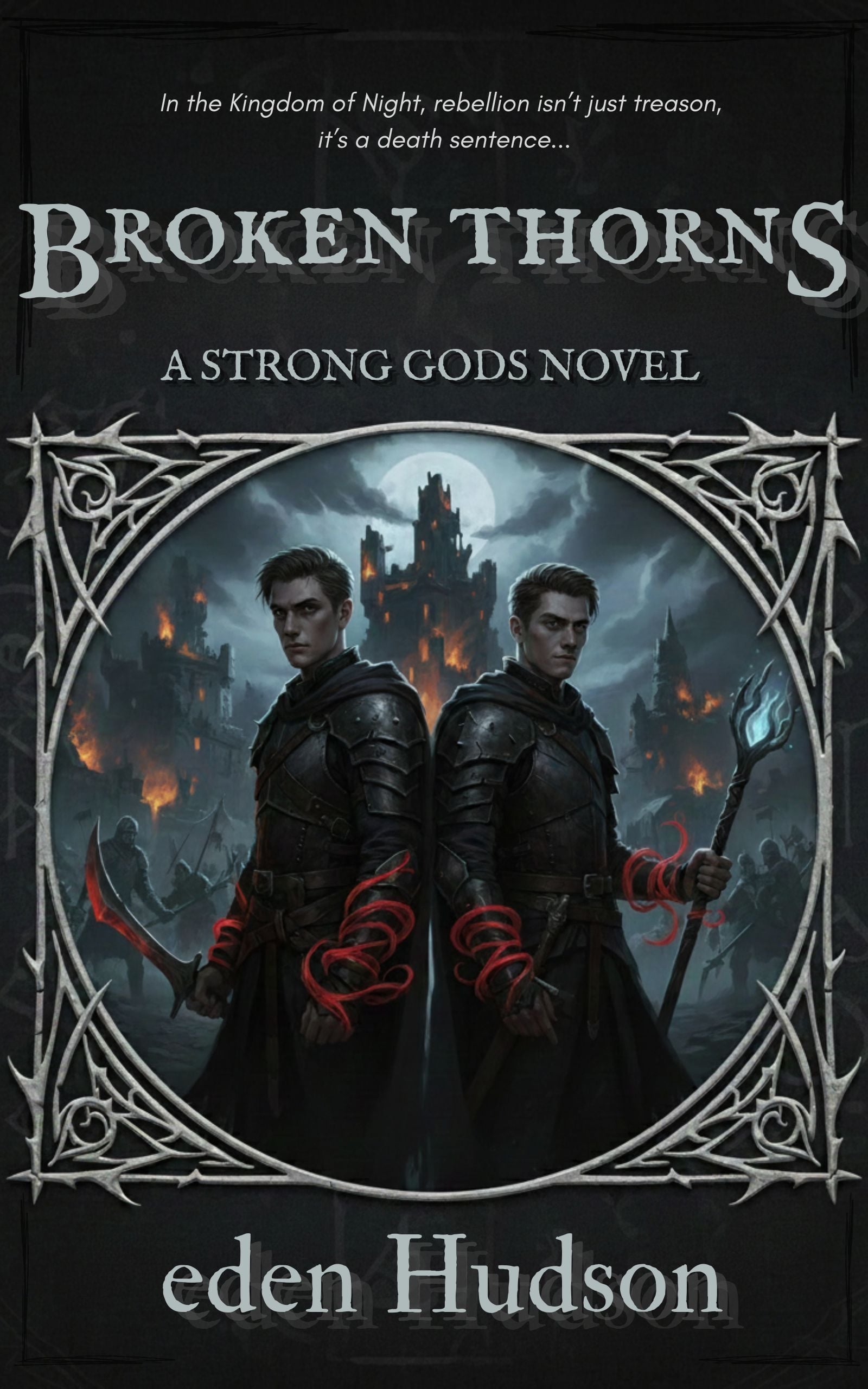 Broken Thorns is the standalone prequel novel to the Strong Gods series. It tells the story of the bloody Cinterlands Rebellion—the tragedy that forged the Saints, and the spark that started a fire burning out of control in the Kingdom of Night.