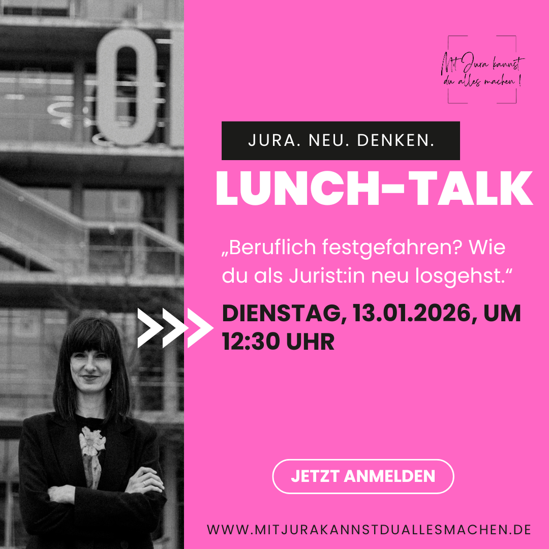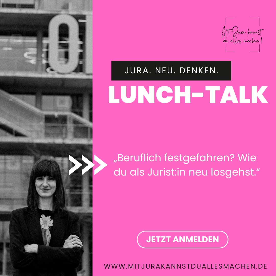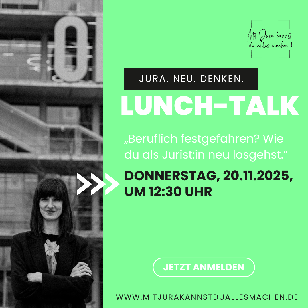 Im Lunch-Talk spreche ich offen über meinen eigenen Ausstieg aus der klassischen Juristerei – und warum ich heute einen völlig anderen Weg gehe.