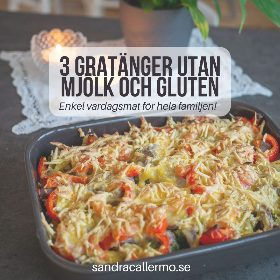 Jag älskar att laga gratänger då det kräver liten arbetstinsats och blir krämigt, såsigt och gott! Så här har jag valt ut 3 gratänger som alla är utan mjölk, gluten och ägg och de är så goda.