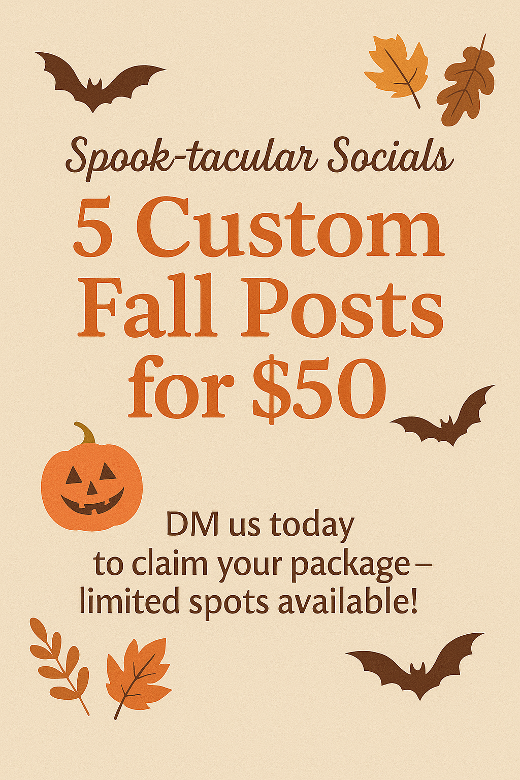 50 ready-to-use fall posts for your social media. Save time, stay consistent. $50.