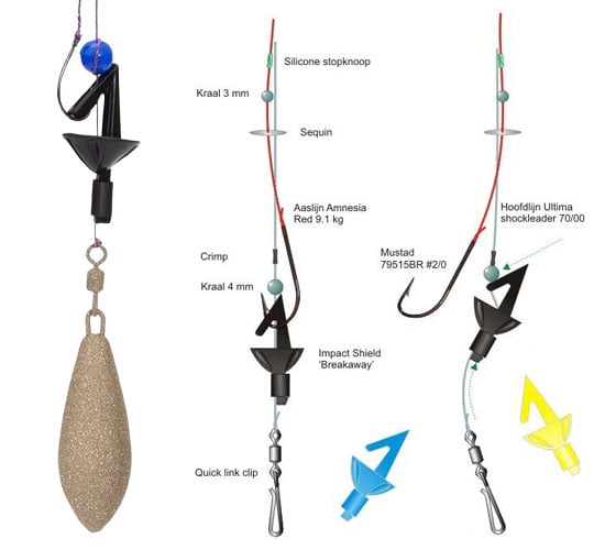 The BreakAway Impact Shields allow the angler to clip down the hook into the cast position. This makes the rig aerodynamic increasing the casts distance by eliminating the helicopter effect and it also protects the bait in the cast too. Build your own clip down rig.