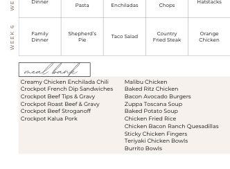 Never wonder what to make for dinner again with a six week rotating meal plan.