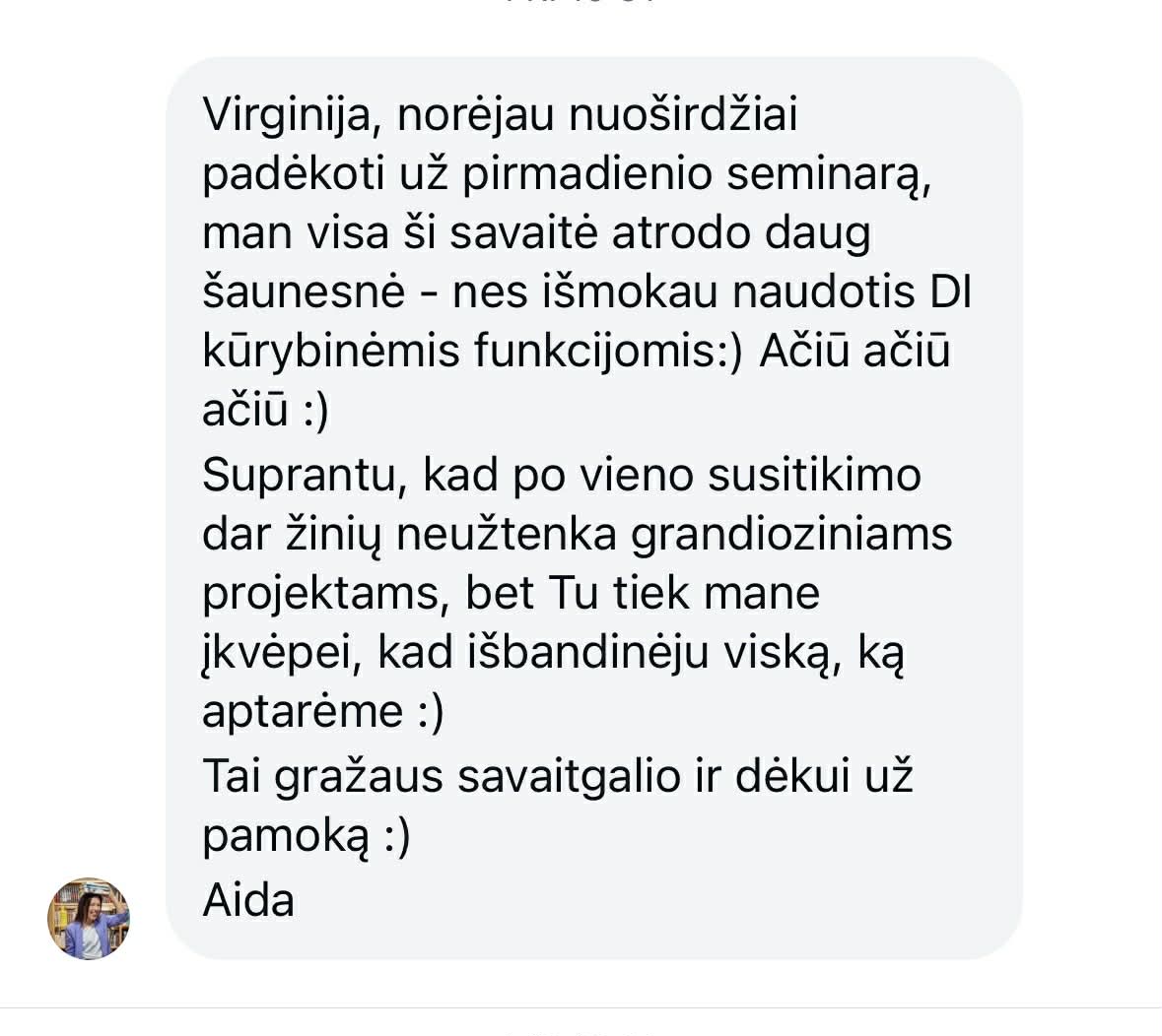 🔹 Aktyvi Lietuvos DI asociacijos narė – nuolat seka naujoves ir jas perteikia suprantamai