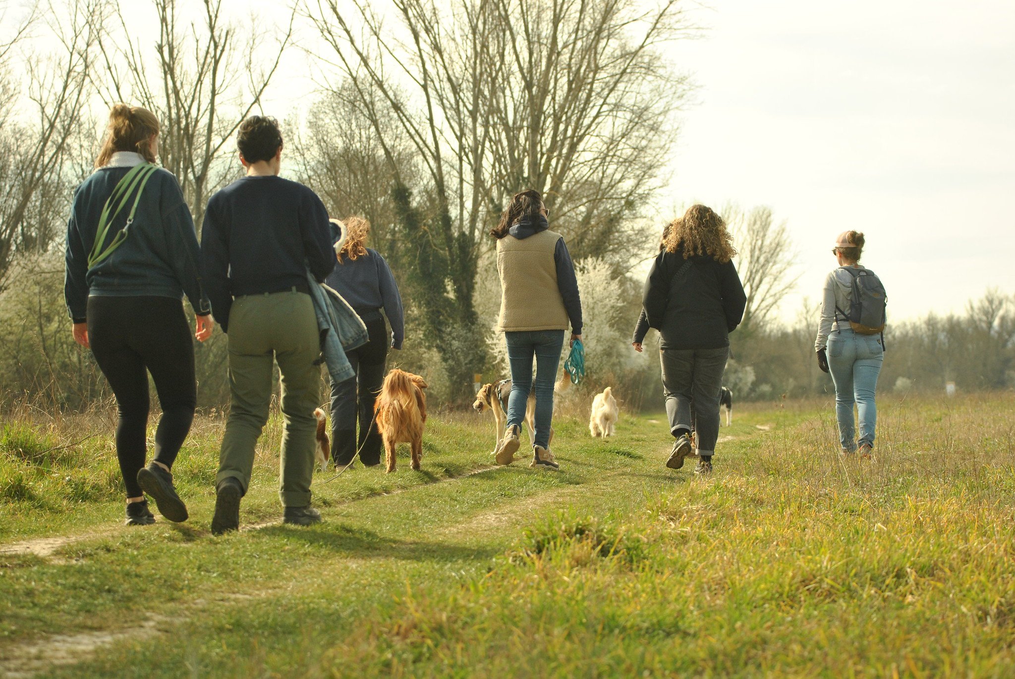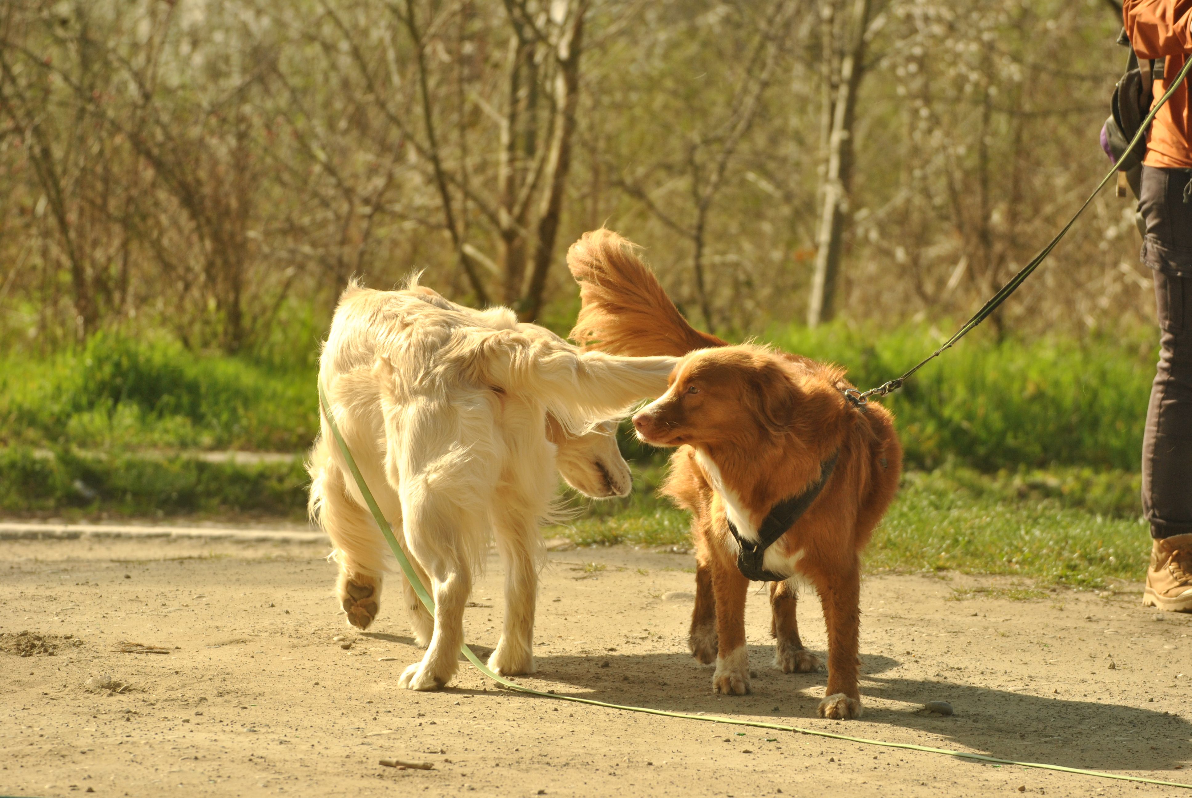 Nos balades d'1h environ commencent par des bonjours polis entre chiens, deux par deux au départ puis avec les autres en commençant à marcher, sous la supervision de Margaux et/ou Aurélie. L'objectif étant que chaque chien puisse profiter de sa balade de la manière la plus sereine possible. Le rôle de Margaux et Aurélie sera de vous accompagner au mieux pour atteindre cet objectif ensemble. 🥰