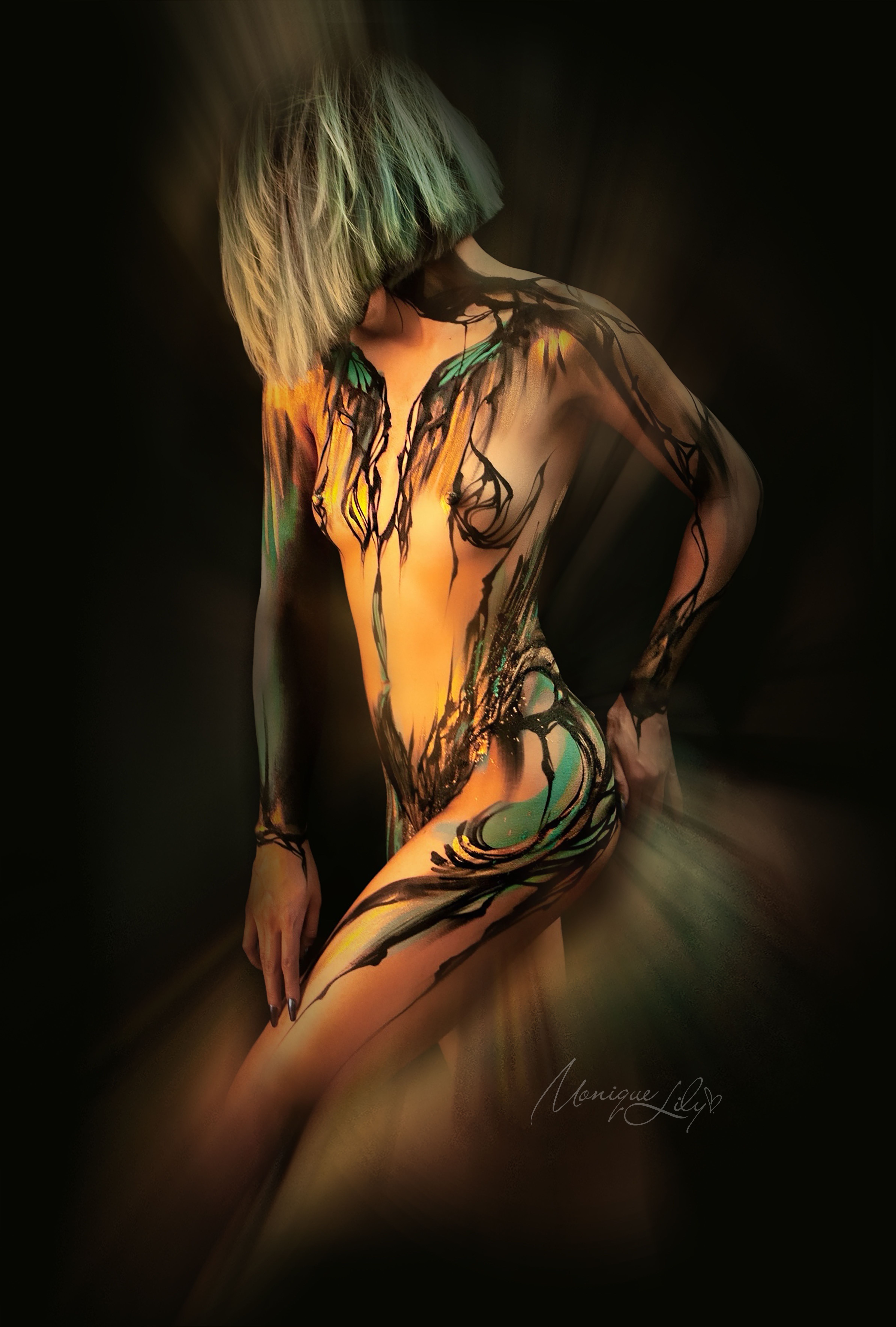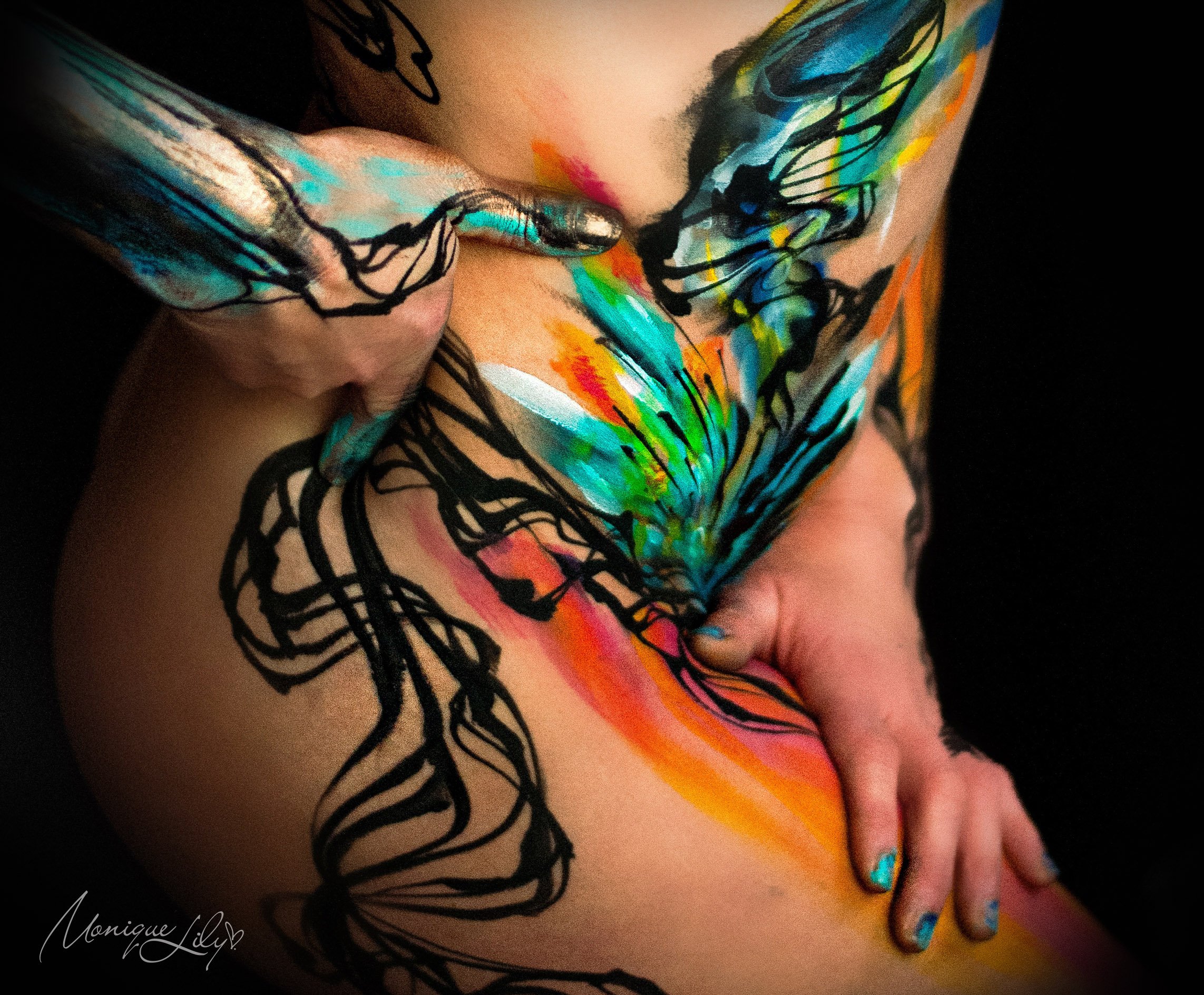 Bodypaint is voor mij een uiting van energie – lijnen die bewegen tussen jou en je model. Het is het vieren van het (vrouwen)lichaam, het loslaten, en vrij zijn in creatie en in mens-zijn.