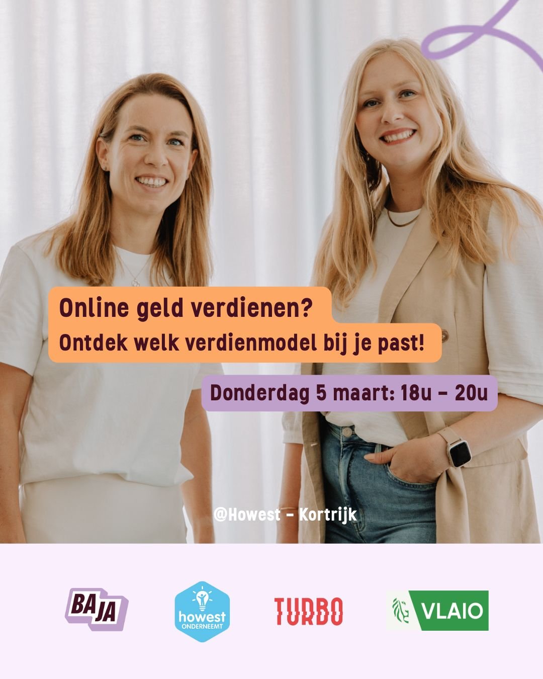 Jantien en Aurelie van BAJA Academy delen hun ervaring als digitale ondernemers en tonen hoe jij zelf kan starten met een online inkomstenstroom, stap voor stap en zonder overrompeld te raken door technische tools. Je hoeft nog geen idee of product te hebben, nieuwsgierigheid en leergierigheid volstaan.
