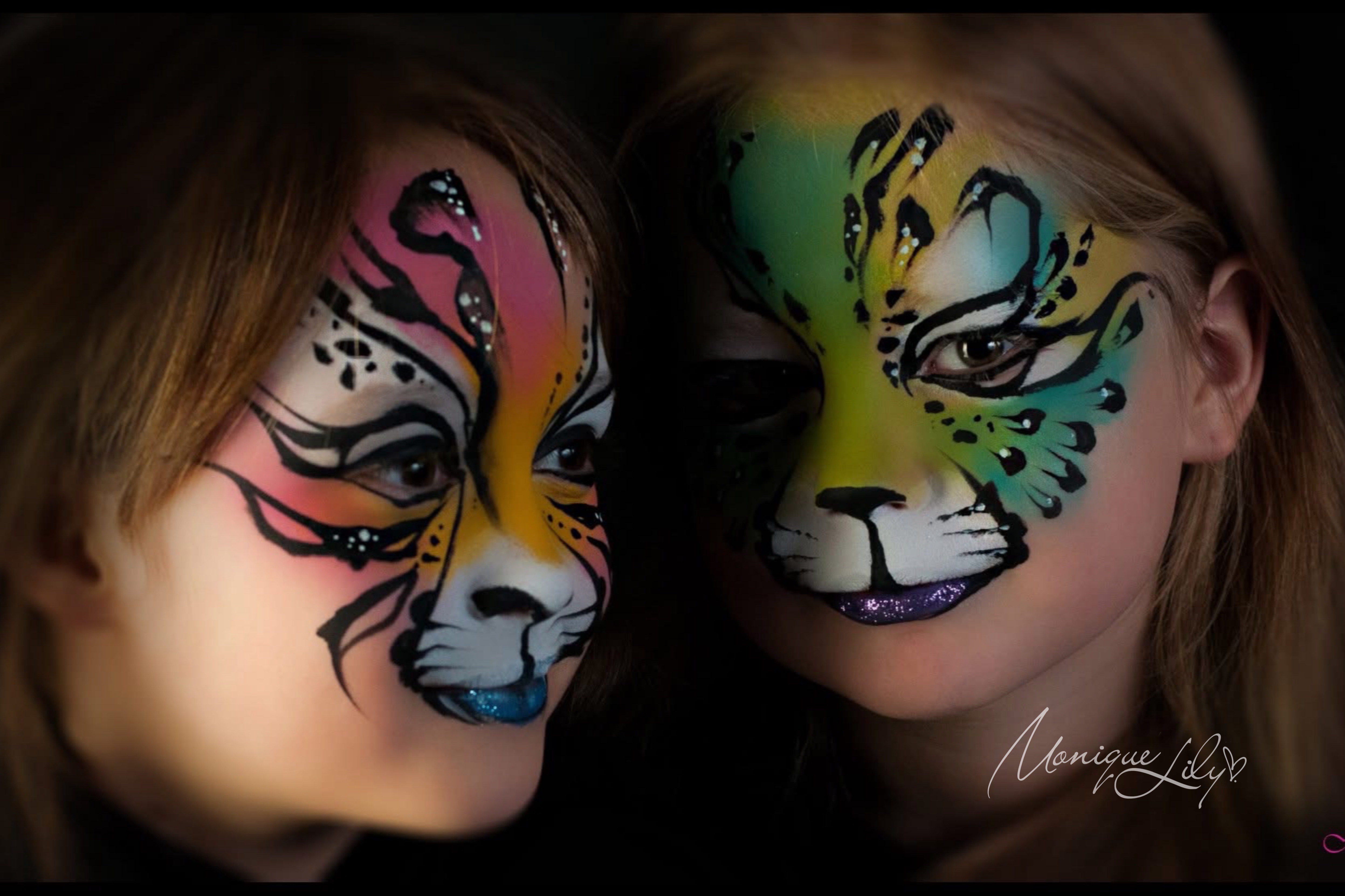 In the 16 years of face painting I have painted hundreds of Kitty Cats, Tigers and Cheetah's and when you paint so many you automaticly start to change up and play..... and this is what i am sharing with you!