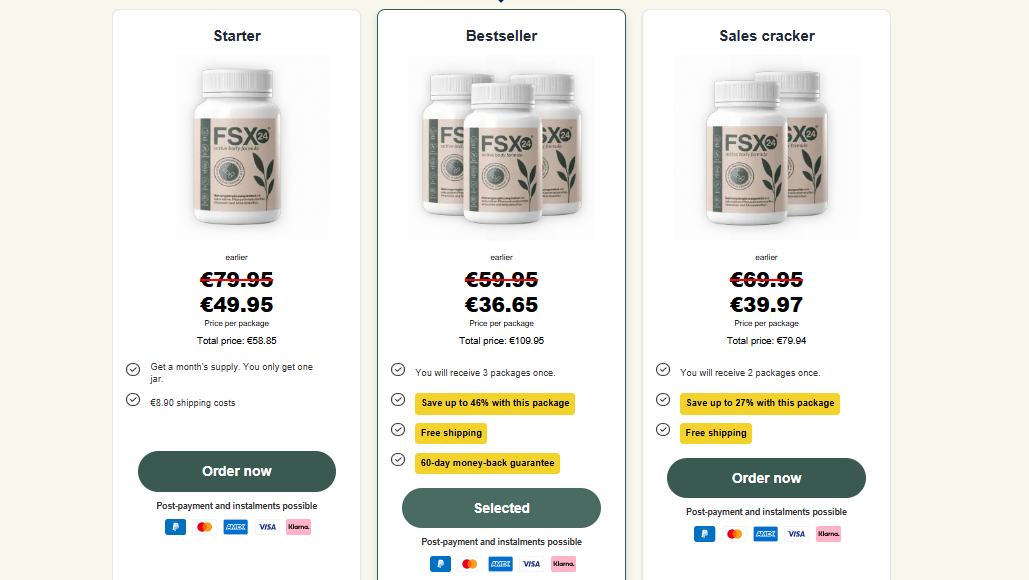 The price of FSX24 Netherlands can vary depending on the package you choose. Generally, manufacturers offer different bundle options to make the supplement more affordable for long-term use. A typical pricing structure may include: