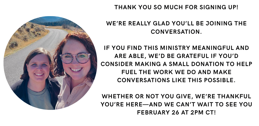 Click "Sign Me Up" below to reserve your spot. As always, these conversations are free, but we’re grateful for any donations. In May, every dollar given will go directly to foster families I’m connected with who could use some extra encouragement and supplies.