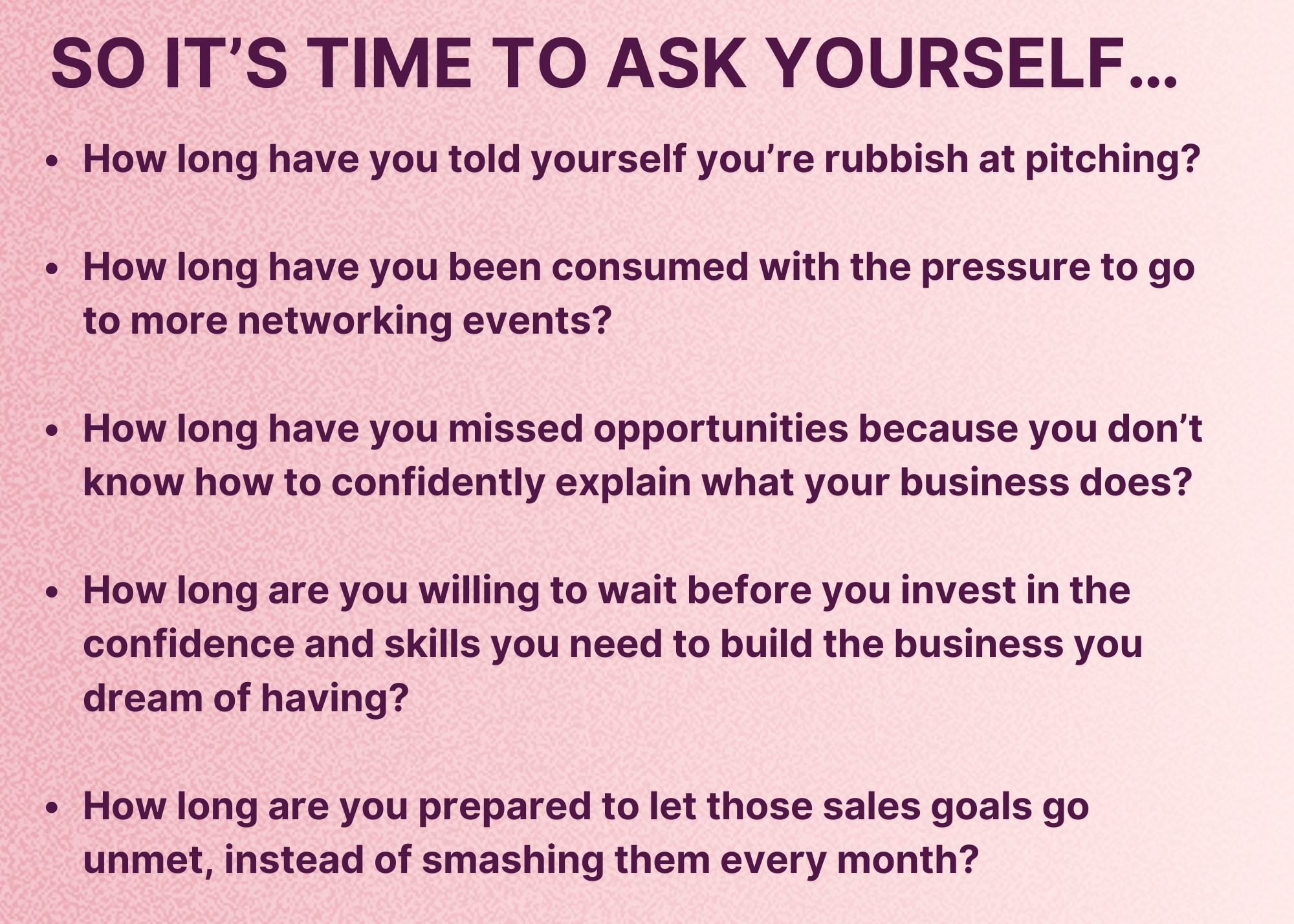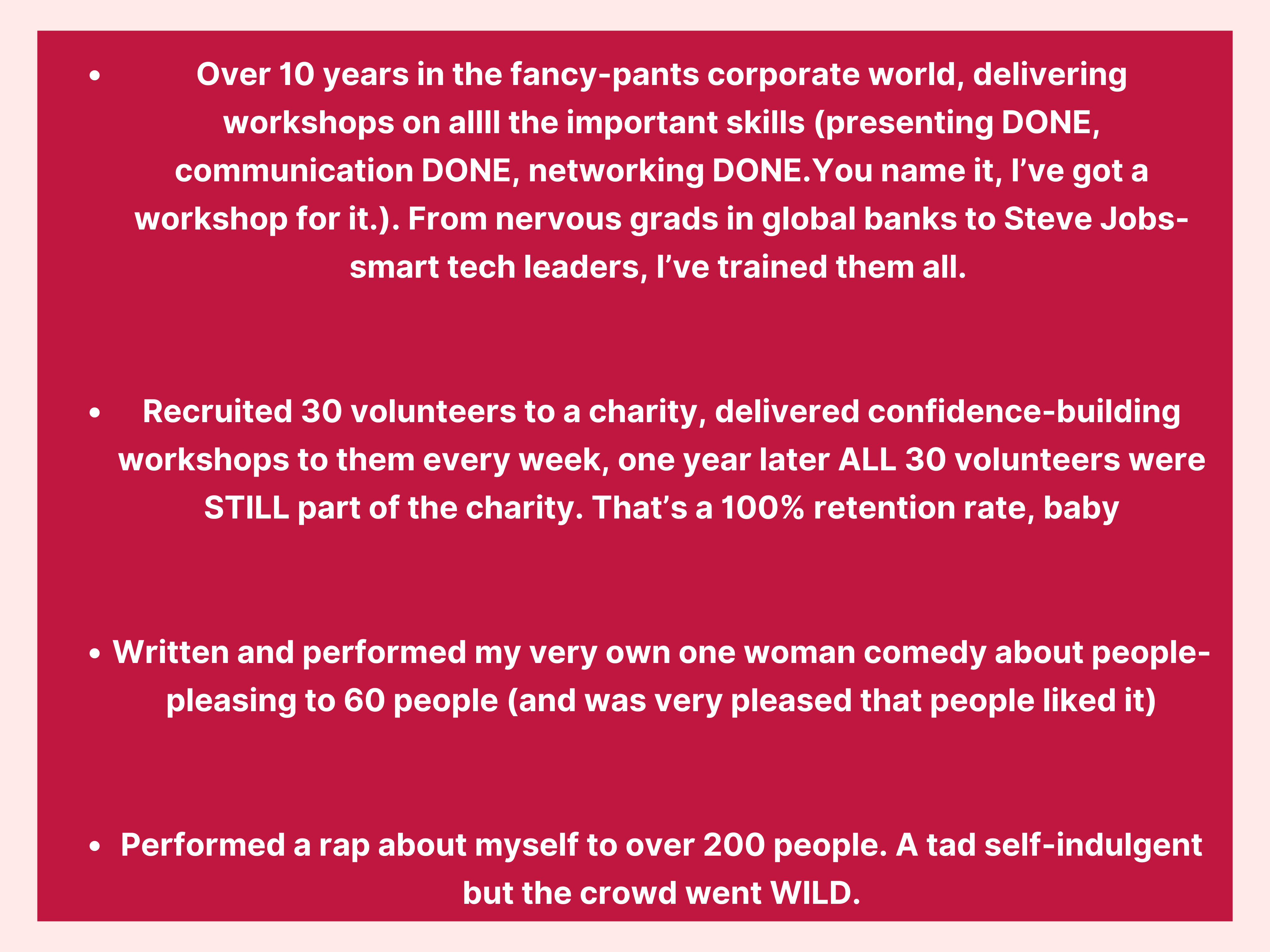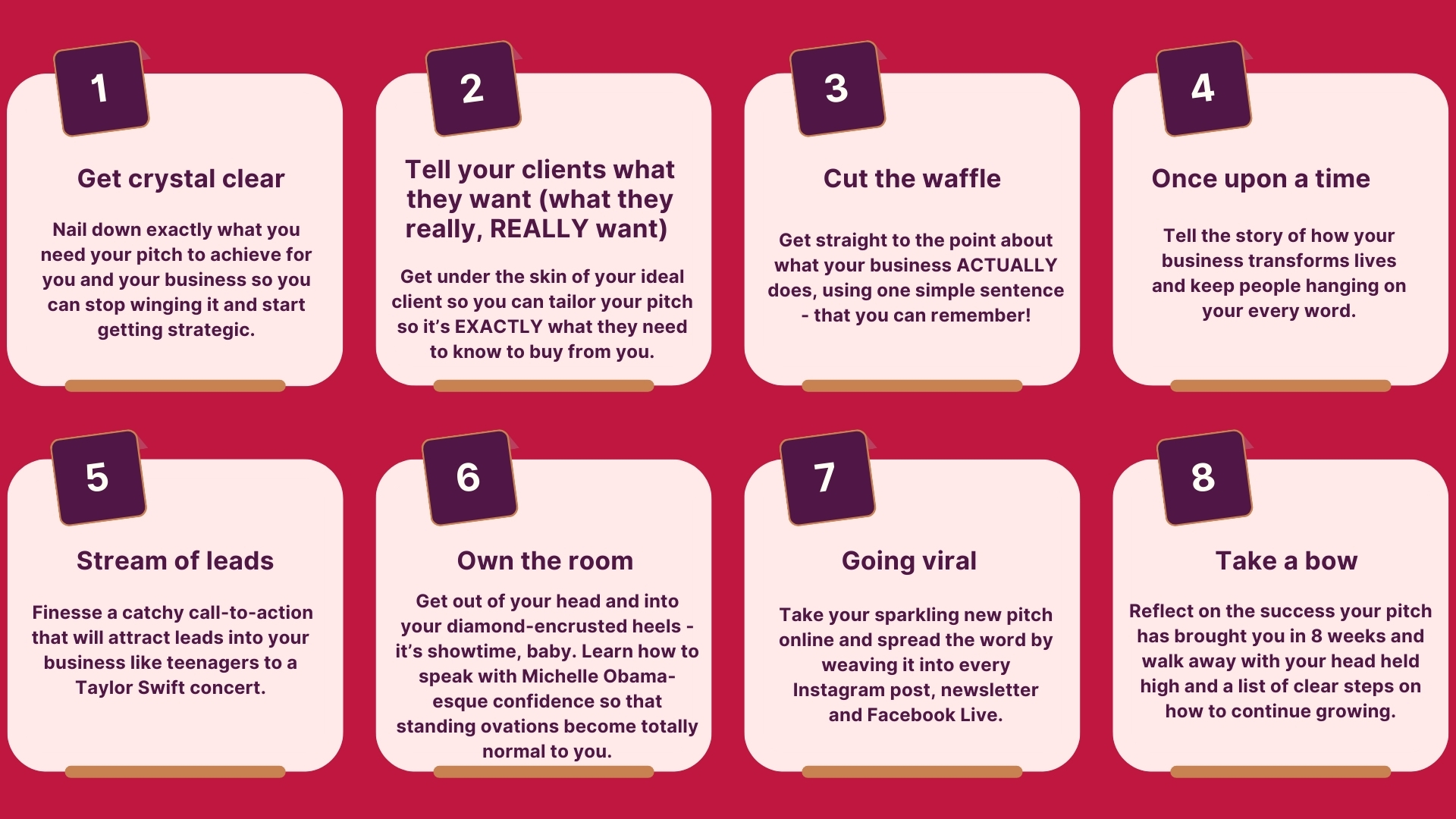 This 8-week VIP 1:1 confident pitching programme is where caring business women come to break out of their shell and get booked out.