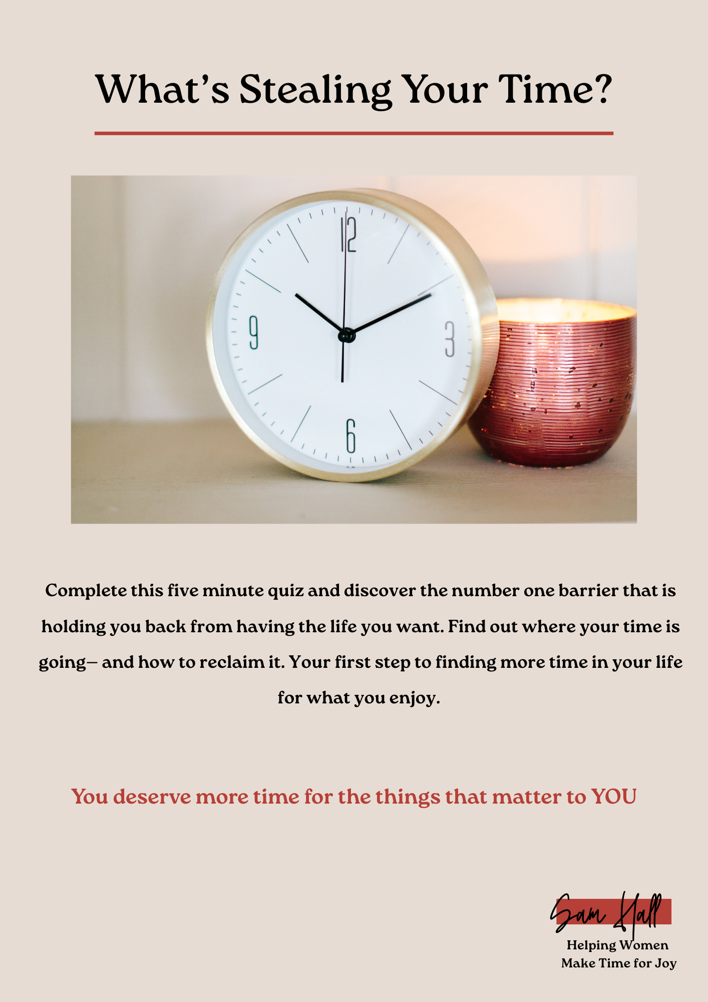 That’s where this quiz is going to help. By answering the questions you are going to identify what is stopping you from finding time for YOU.