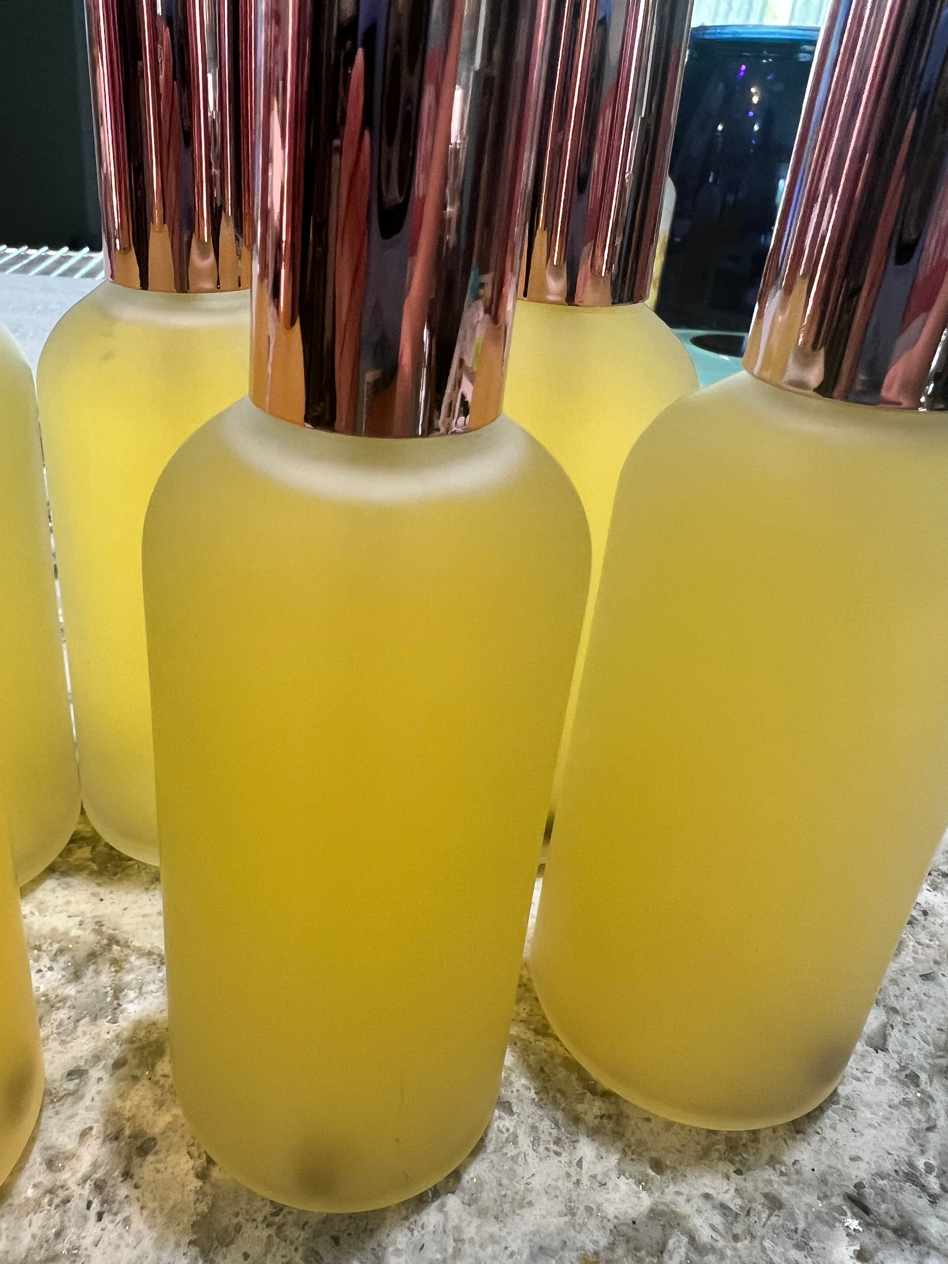 The Relaxation candle was designed to help continue the calm you feel after a session. This scent will be in the new blue glass container. Essential Oil: helps with anxiety and depression. Hibiscus Palm: lowers blood pressure, immune boosting. Black Sea Blend: contains 10 different essential oils. Valerian Root (organic herb): sleep aid, anxiety relief, Lavender Flowers (organic herb). Quartz chips at the bottom and copper dust on the top for amplification.