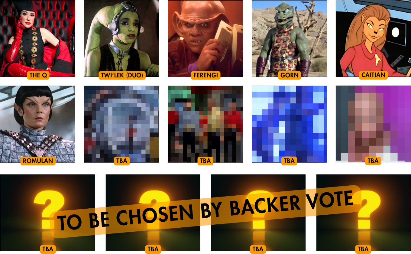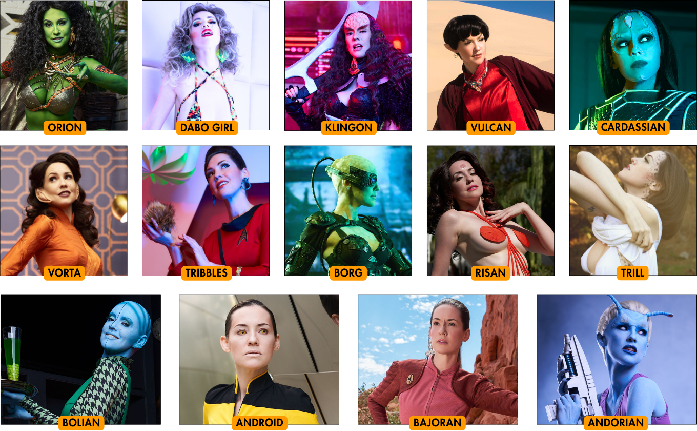 Boldly Stripped Volume 1 included an Orion, Dabo Girl, Klingon, Vulcan, Cardassian, Vorta, Tribbles, Borg, Risan, Trill, Bolian, Android, Bajoran, and Andorian.