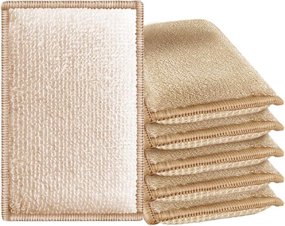 Faliuepe Bamboo Dish Sponge Natural Kitchen Scrub Sponges-Beige,6 Pack