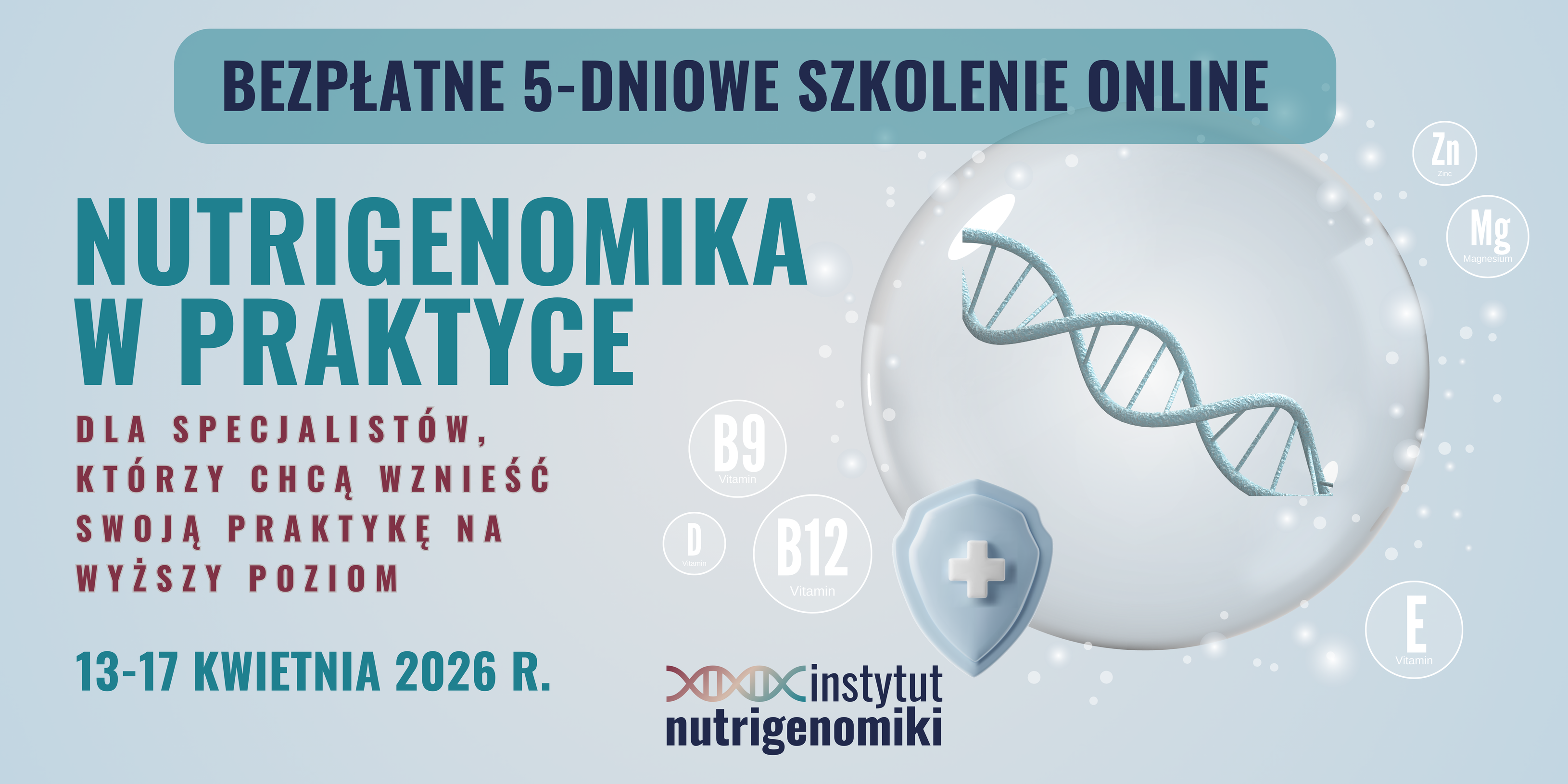 Serdecznie zapraszam Cię na 5-dniowe bezpłatne szkolenie online, podczas którego zrozumiesz, z czego mogą wynikać przewlekłe trudności i objawy Twoich pacjentów, dowiesz się jak odczytać informacje zapisane w genach i nauczysz się praktycznych sposobów na wprowadzenie zasad nutrigenomiki do swojej praktyki.