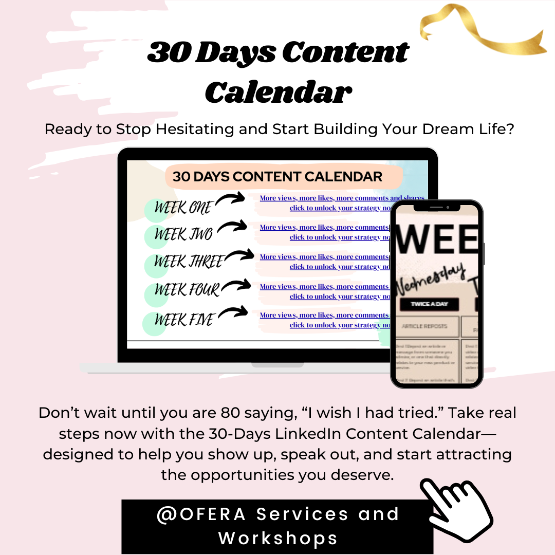 Turn ambition into action—starting today. Whether you're seeking a new job, dreaming of launching your own business, or simply ready to grow professionally, this 30-day LinkedIn Content Calendar Challenge is your launchpad.