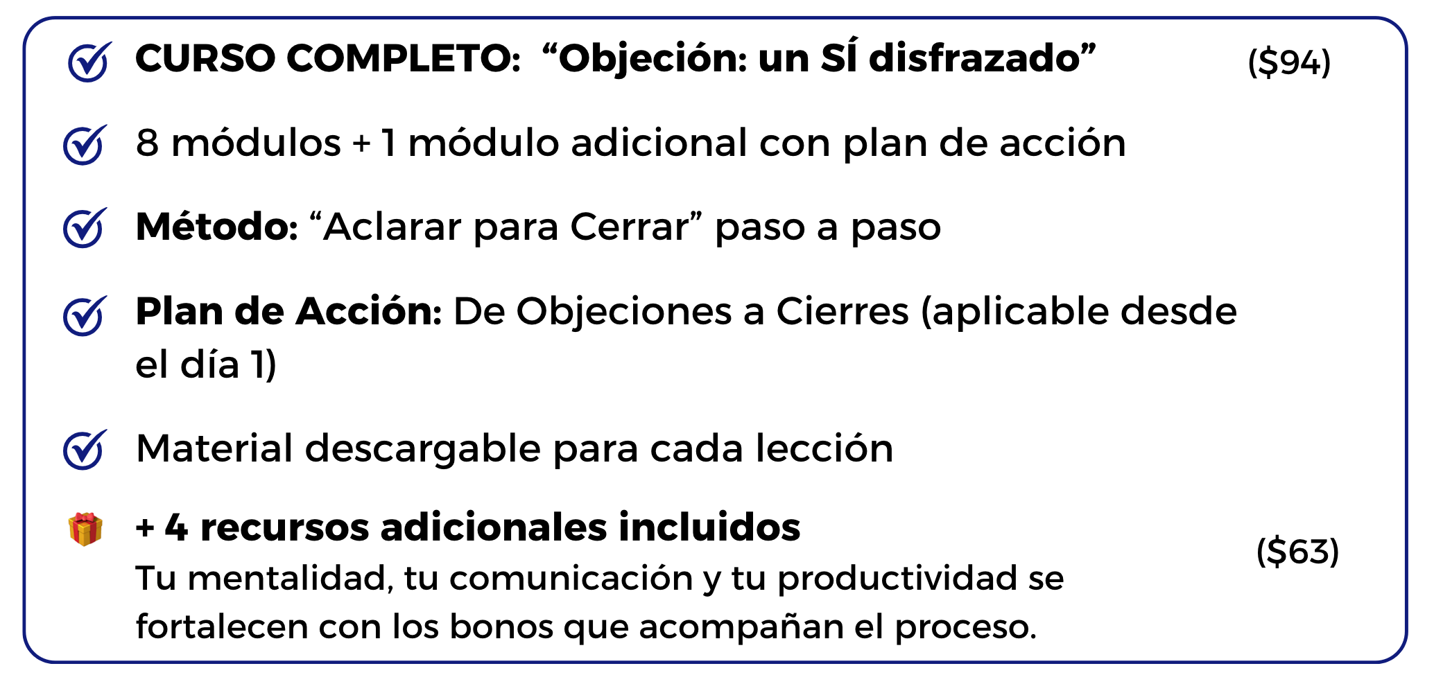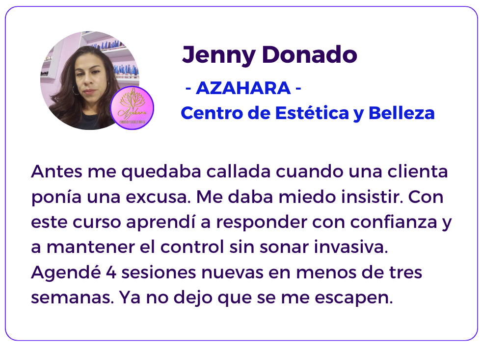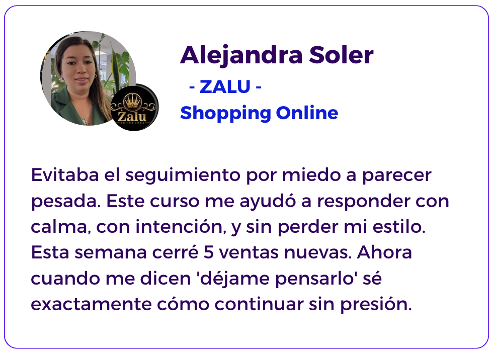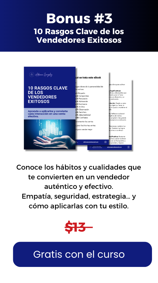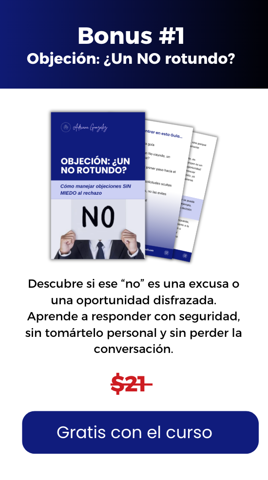 Este curso te ayuda a responder objeciones con confianza, mantener el control de tus conversaciones y cerrar con más seguridad.