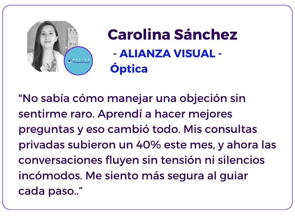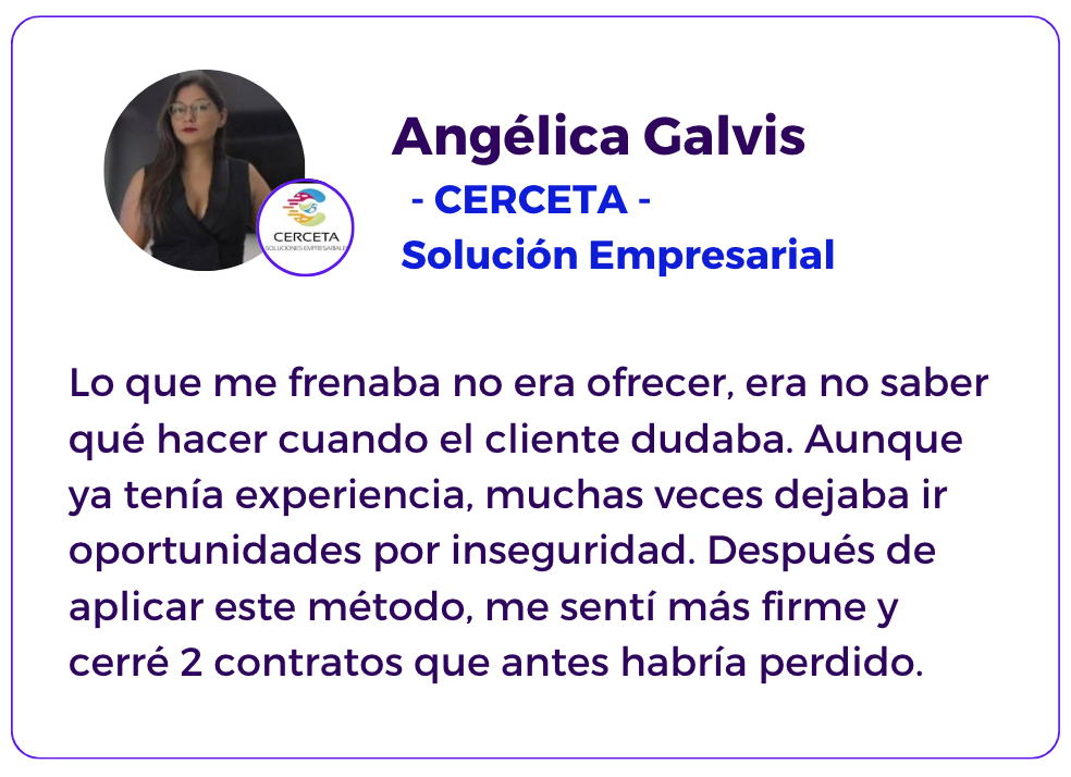 En solo 15 días vas a notar conversaciones más claras, menos bloqueos y más oportunidades bien llevadas hasta decisión, incluso si antes no sabías cómo responder a una sola objeción.