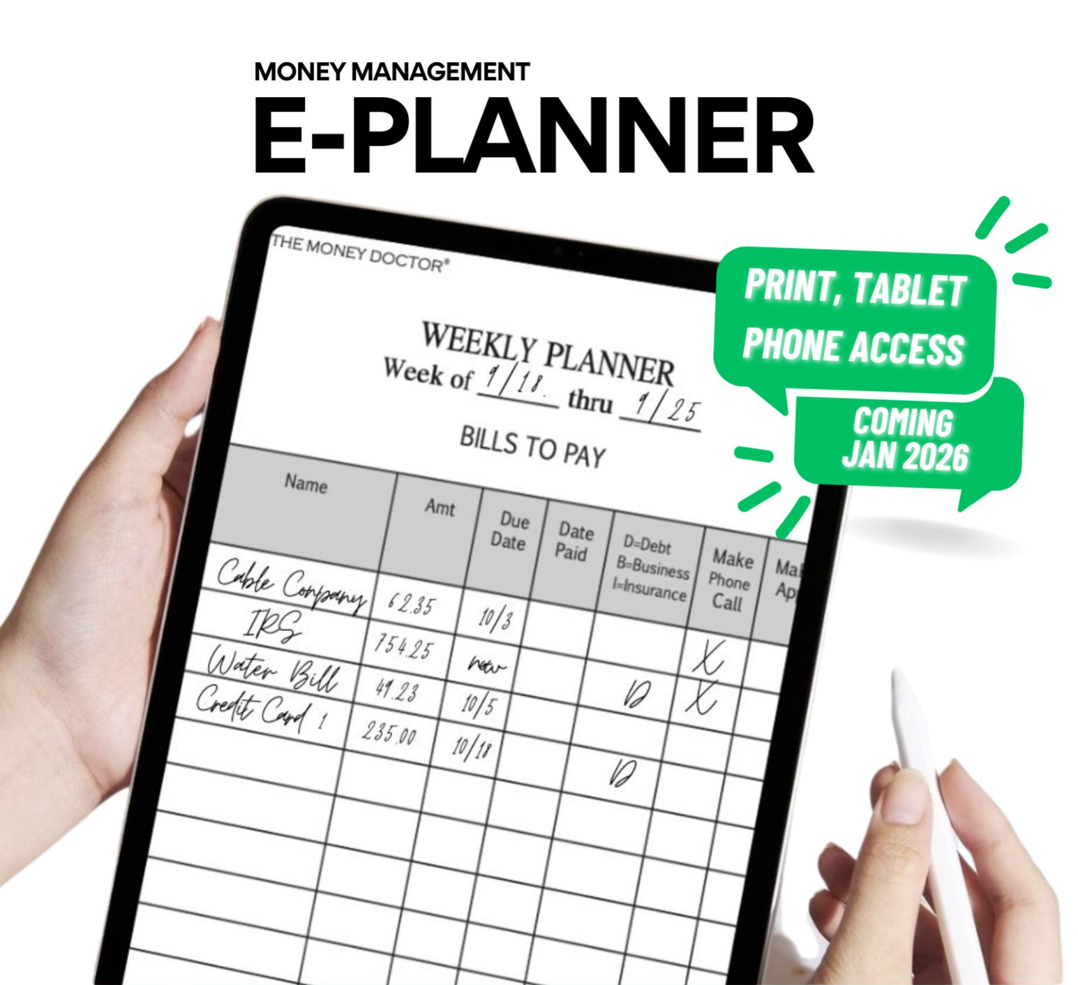 Our Money Management Planner helps you get everything out of your head and onto paper — weekly bills, e-bills, auto-drafts, and tax-related spending — so you can actually see your money instead of guessing.