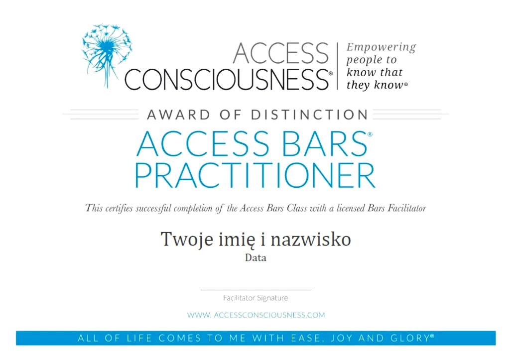 (Access Bars® Facylitator, praktyk procesów Access Facelift® i Access Body ® )