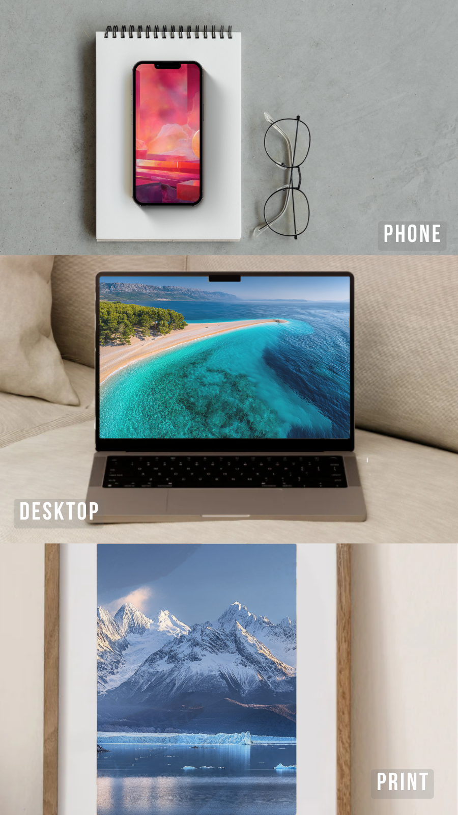 Includes phone, desktop, square & print formats