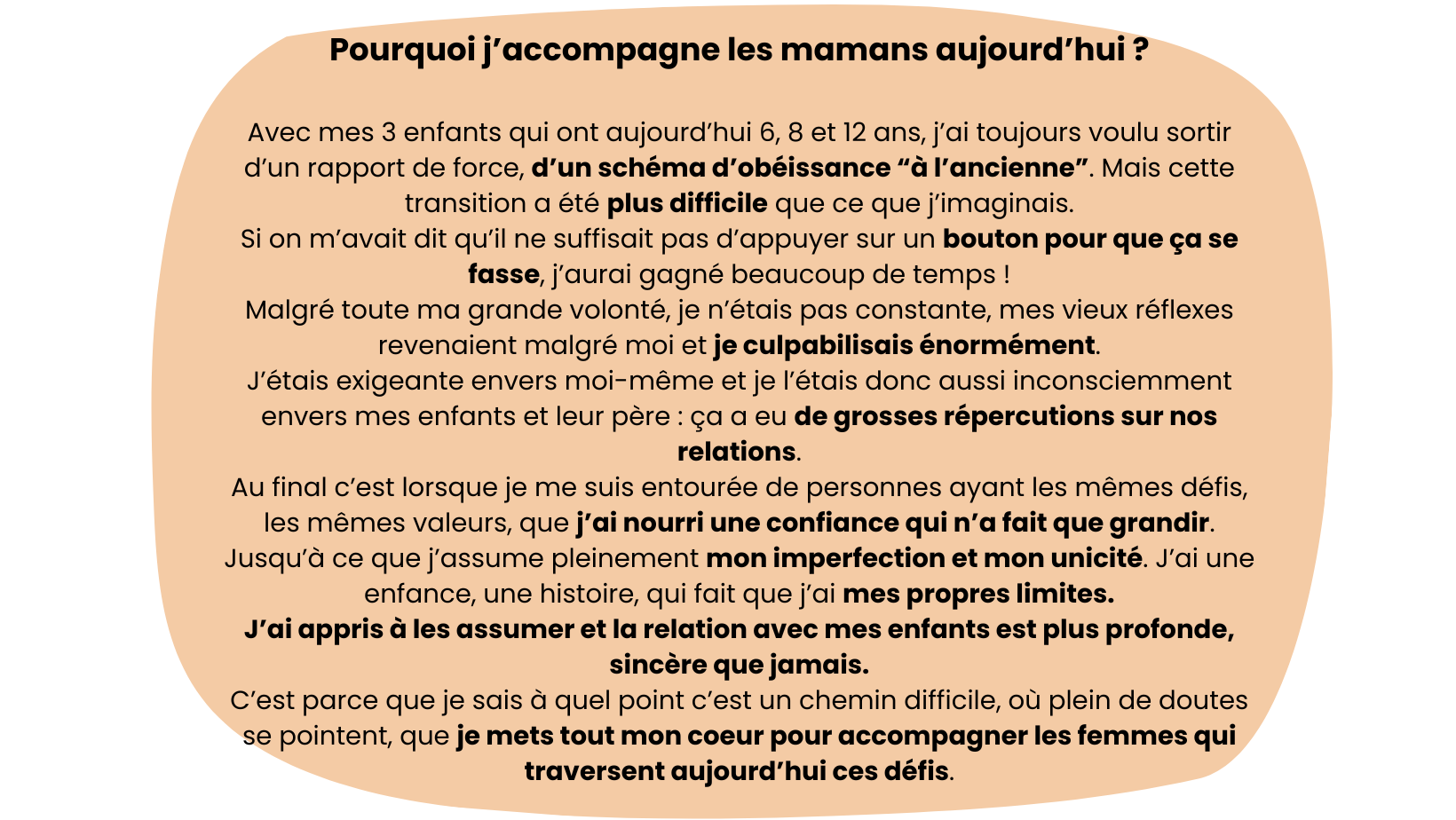 Mon objectif principal est que tes difficultés se règlent durablement, que tu te sentes confiante dans ta parentalité et que tes relations avec tes enfants s'améliorent.