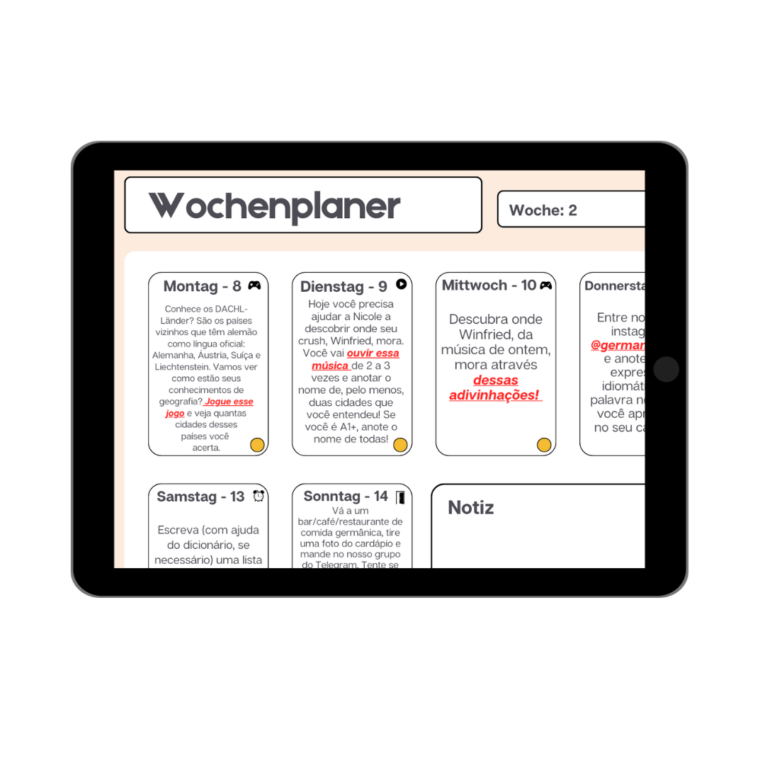 Um planner com uma série de atividades simples, curtas e divertidas, pensadas para desenvolver suas habilidades e conhecimentos na língua, desenhado para o seu nível (mesmo para quem está saindo do zero), para que você atinja a fluência de forma muito mais rápida e sem se entediar com um monte de exercícios chatos e repetitivos. Agora na sua versão repaginada e ampliada a todos os níveis!