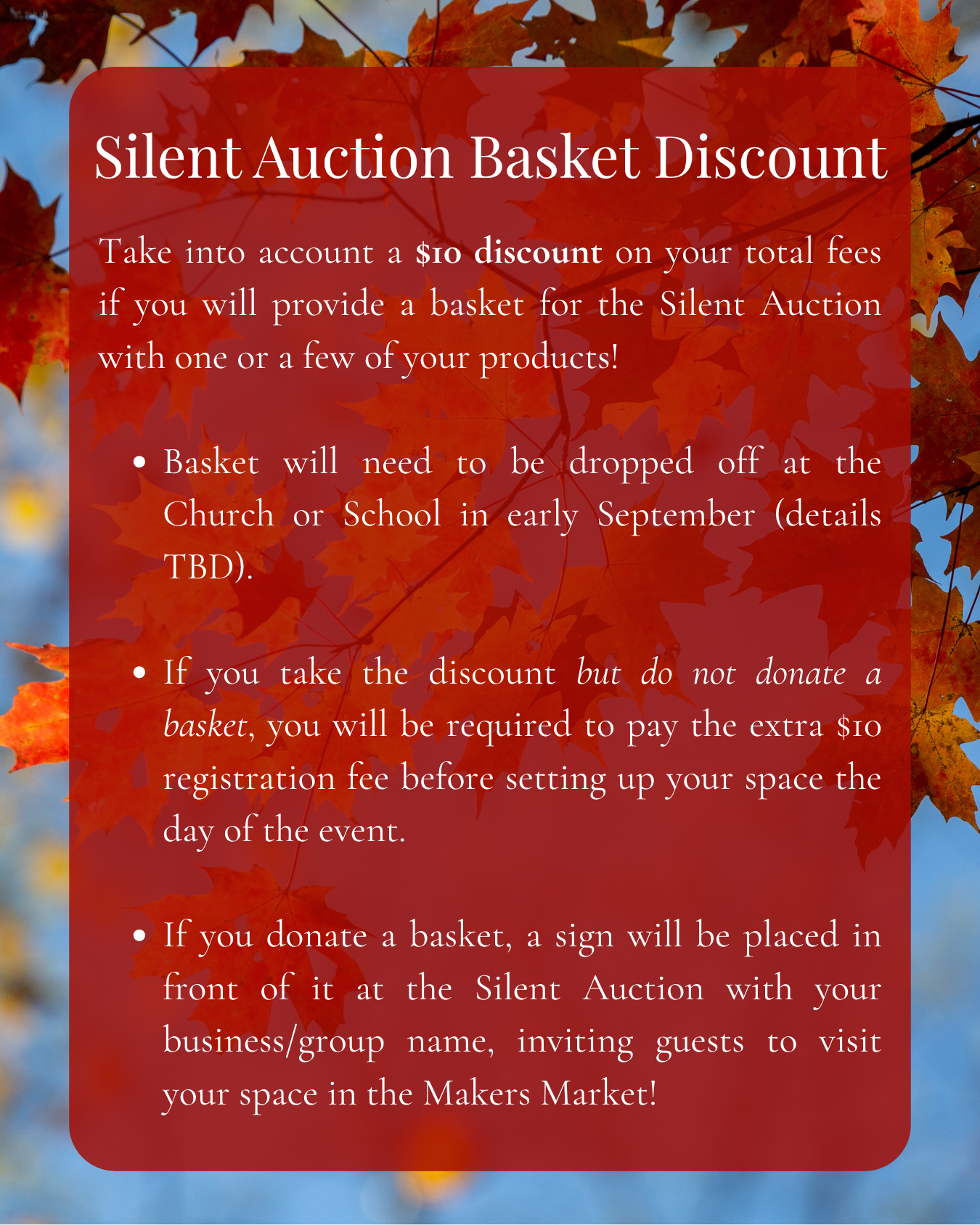 Donating products to the Silent Auction will give you a fee discount and additional promotion--scroll down for more information!