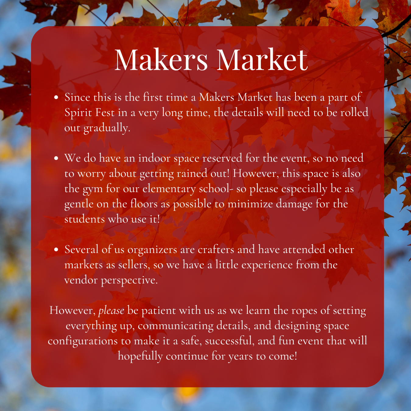 -This is the first time in many years adding a Makers Market to the Sunday event offerings!