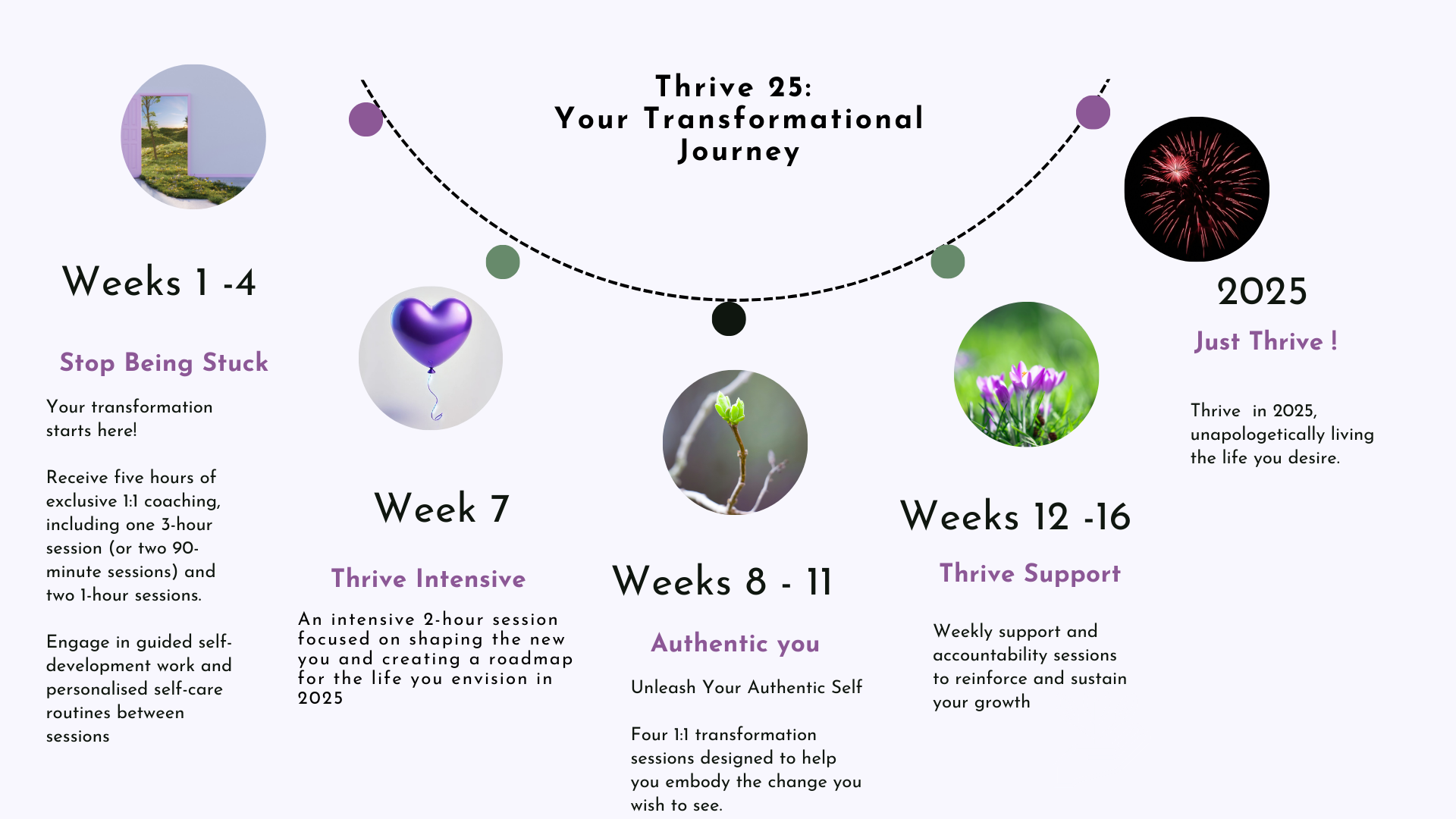Thrive 25 is your gateway to transformation, offering personalised guidance and tools to help you break free from the past and step boldly into your future.
