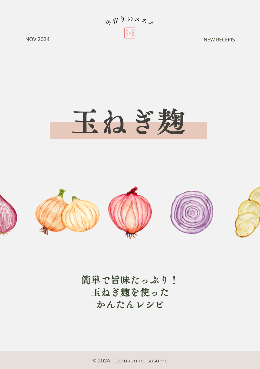 旨味たっぷり、和・洋・中と使い勝手万能な玉ねぎ麹を使ったレシピブックをプレゼントしています。