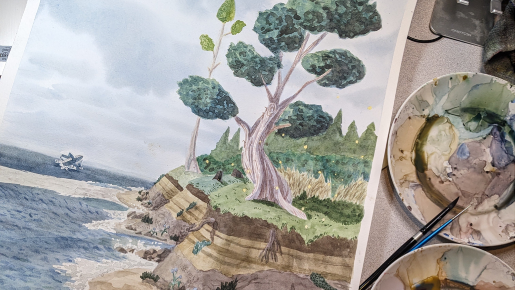 I have been blending storytelling with art from a young age, all the way back to telling my baby sister bedtime stories, and turning them into coloring pages for her the next day. These days, I use watercolor to evoke peace, nostalgia, and connection.