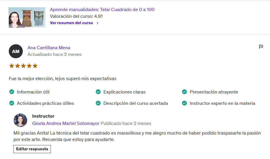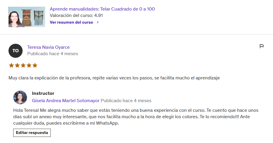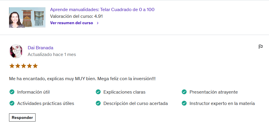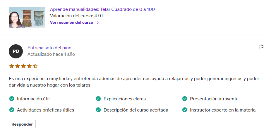 (US$20) Curso Aprende Telar de 0 a 100