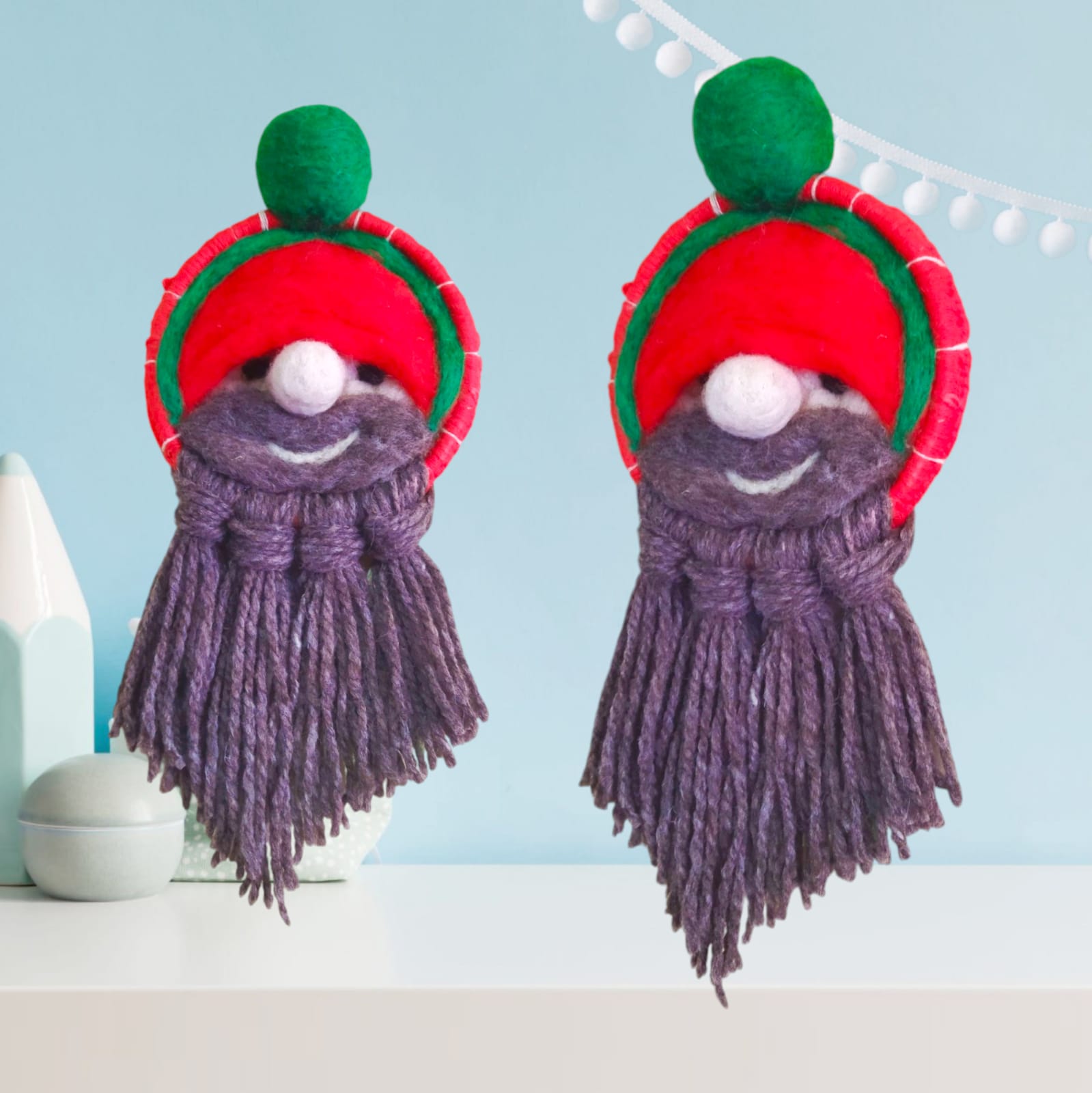 Aprenderás a agujar el gorro y el pompom de Santa.