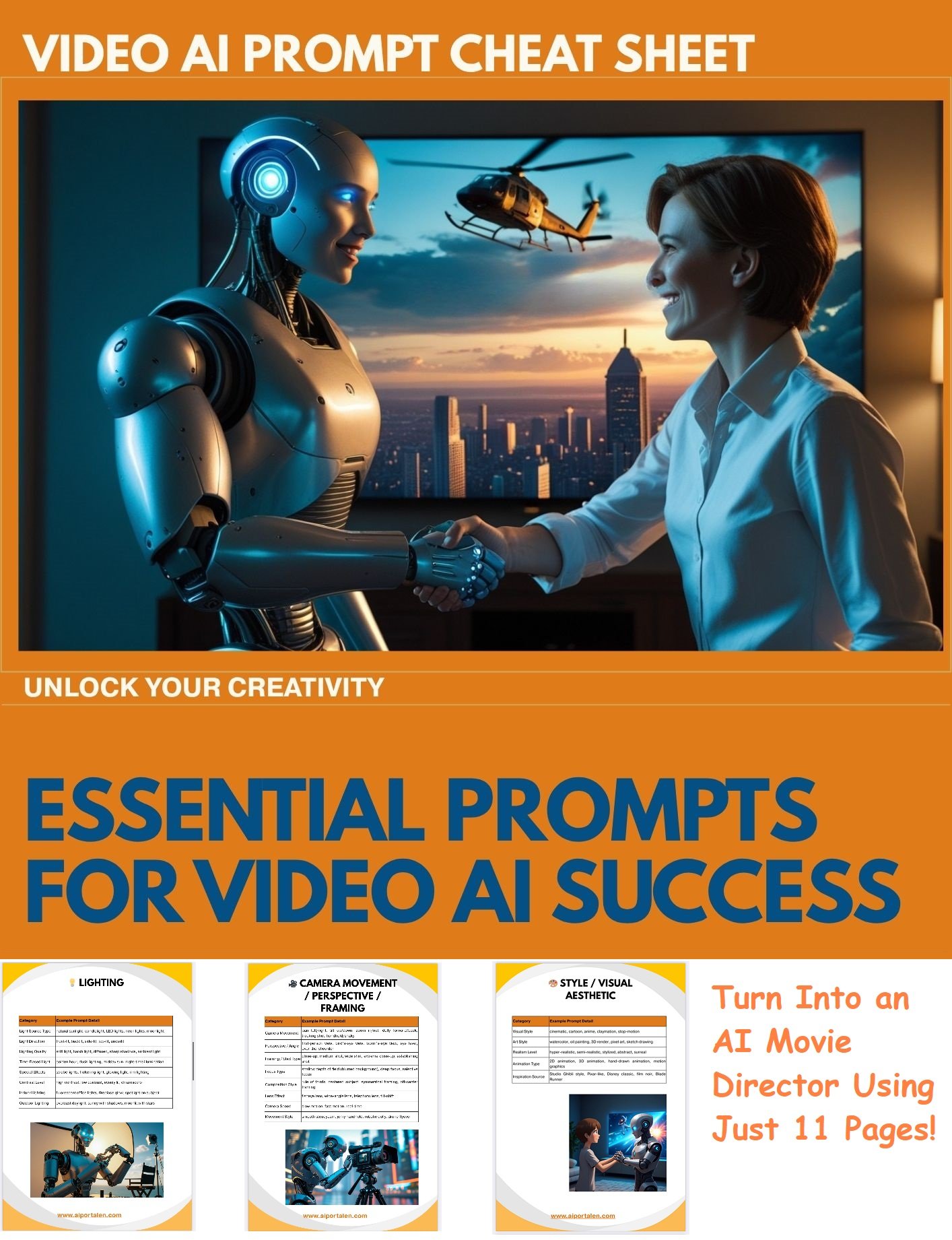 Designed specifically for popular AI video generation tools like Google Veo 3, Runway, Kling AI, Sora, and many more, this prompt cheat sheet helps you craft clear, effective instructions that produce cinematic visuals, engaging characters, dynamic motion, and immersive environments.