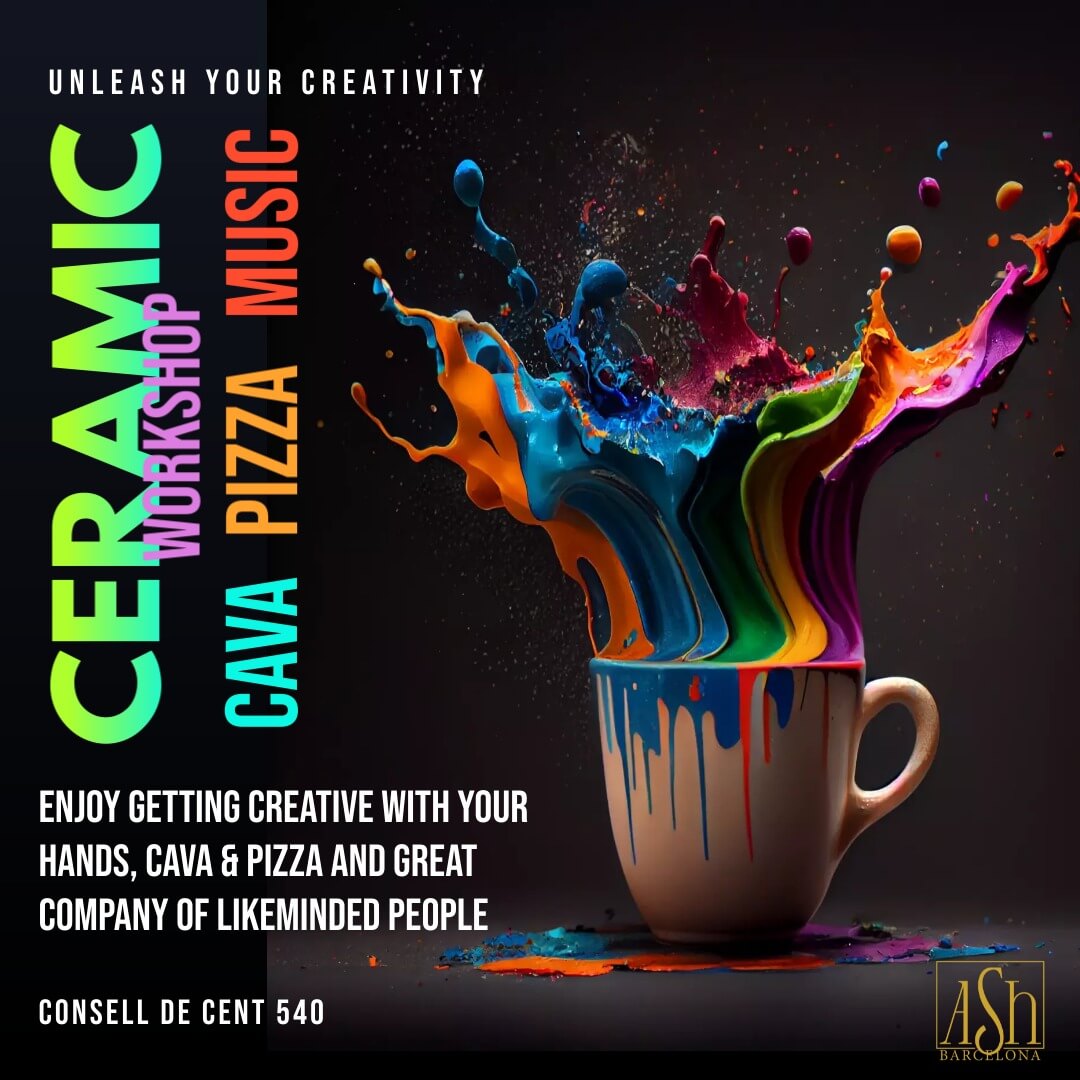 Leave with stunning ceramic creations and cherished memories. Limited spaces available, so reserve your spot now for this unforgettable ceramics, pizza, cava, beer, and music experience at Ash_Barcelona's Ceramic Workshop.