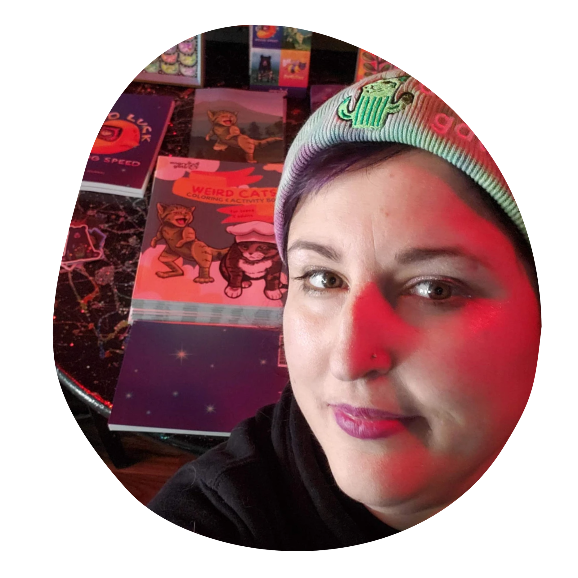 Hi! I'm Lindsey, the artist and professional gremlin behind Angry Gato Designs, where I create silly art that celebrates our furry friends and their big personalities.