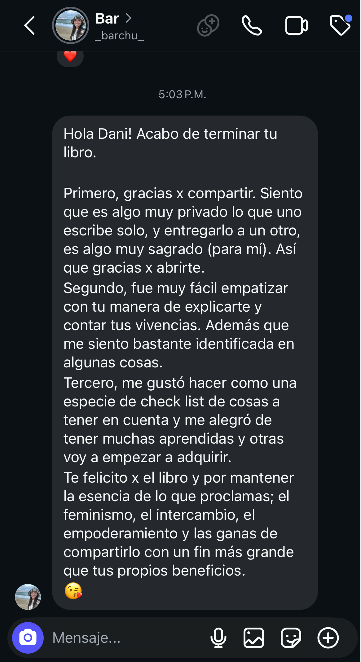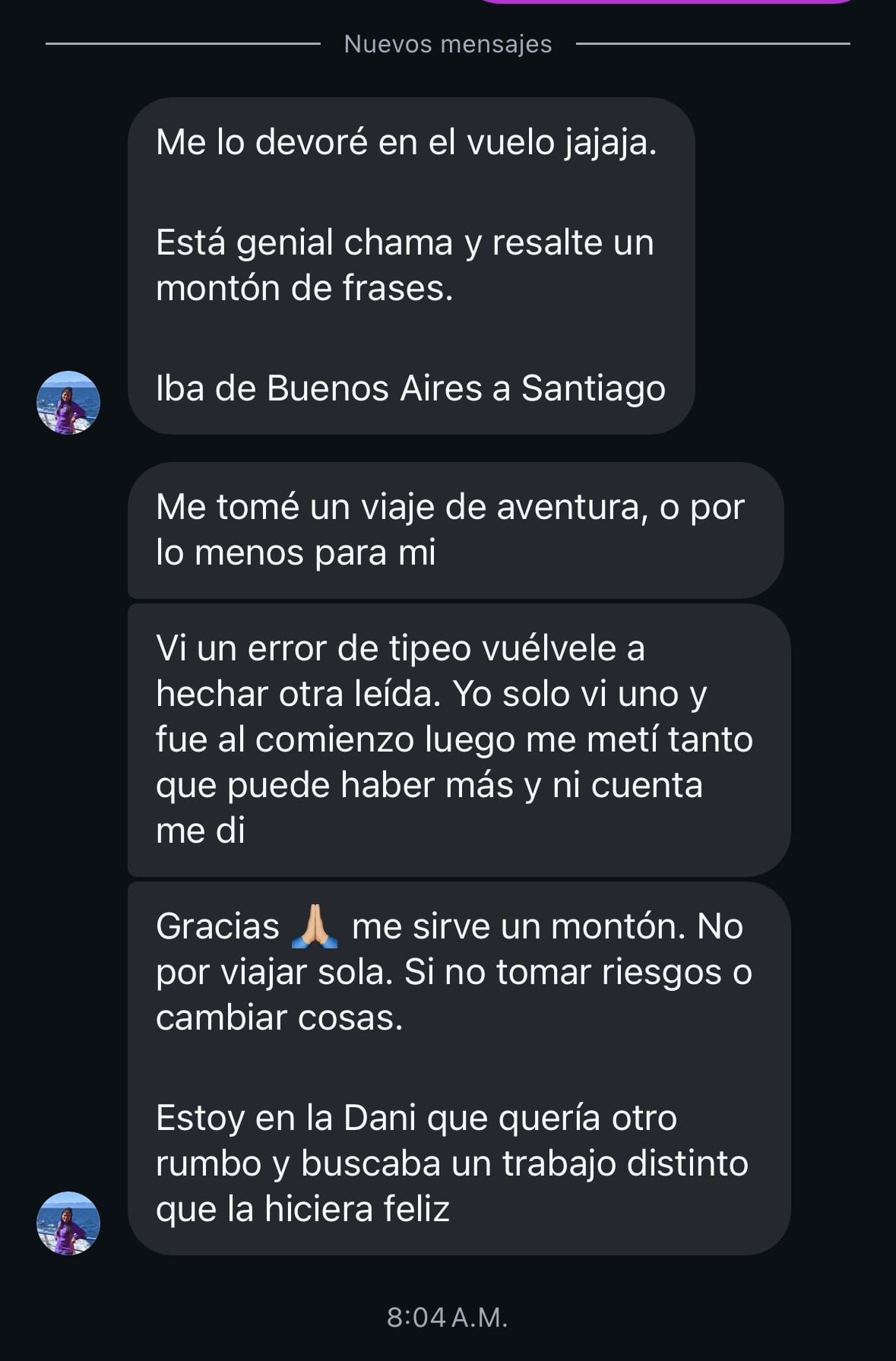 "Siempre pensé que no podía viajar o hacer algo sola porque me daba miedo todo: la inseguridad, perderme, el idioma… Leyendo este libro me di cuenta que mis miedos no me definen, y que puedo empezar con pasos pequeños. Ya hice muchas actividades sola, pero lo mejor es que ya di el paso para organizar mi primer viaje sola y estoy demasiado contenta." –