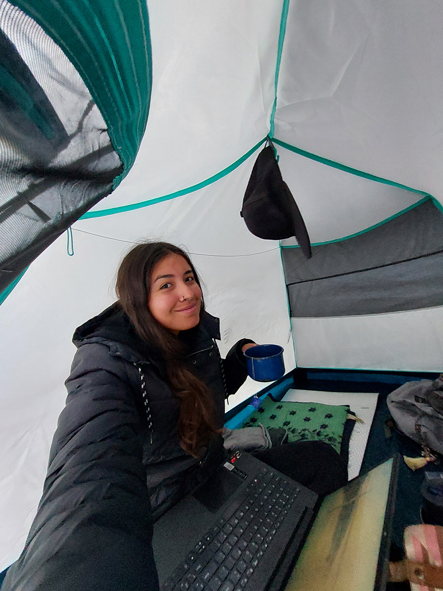 Trabajando desde mi carpa cuando hice un viaje de mochilera sola por Jujuy en el 2023