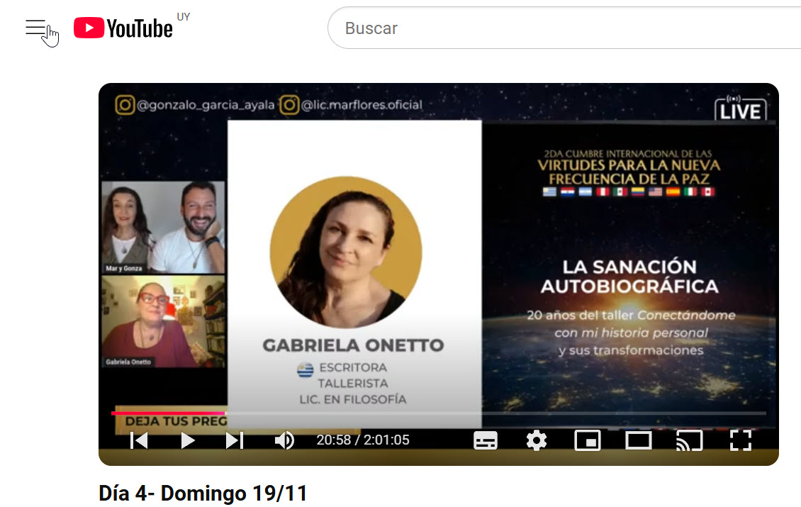 Aquí te dejo también mi masterclass La sanación autobiográfica en el marco de la 2da Cumbre Internacional de las Virtudes para la Paz (2023), en la que hablo bastante del taller y las bondades del ejercicio autobiográfico.
