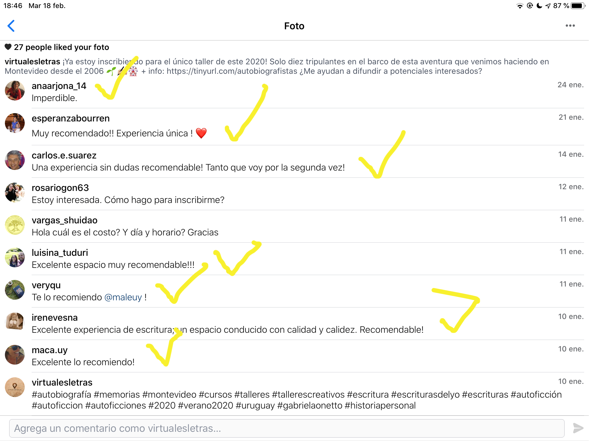 Cuando formulé esta propuesta hace más de dos décadas -en 2003-, lo autobiográfico era una suerte de "underground" de la literatura. Hoy la ecuación se ha invertido, y por todos lados se multiplican las llamadas escrituras del yo y talleres que las ofrecen en diversas presentaciones. Pero la historia personal y sus delicados procesos es algo demasiado precioso como para ponerlo en manos de gente sin experiencia (aunque con estupendos feeds de Instagram, hay que reconocer)😜